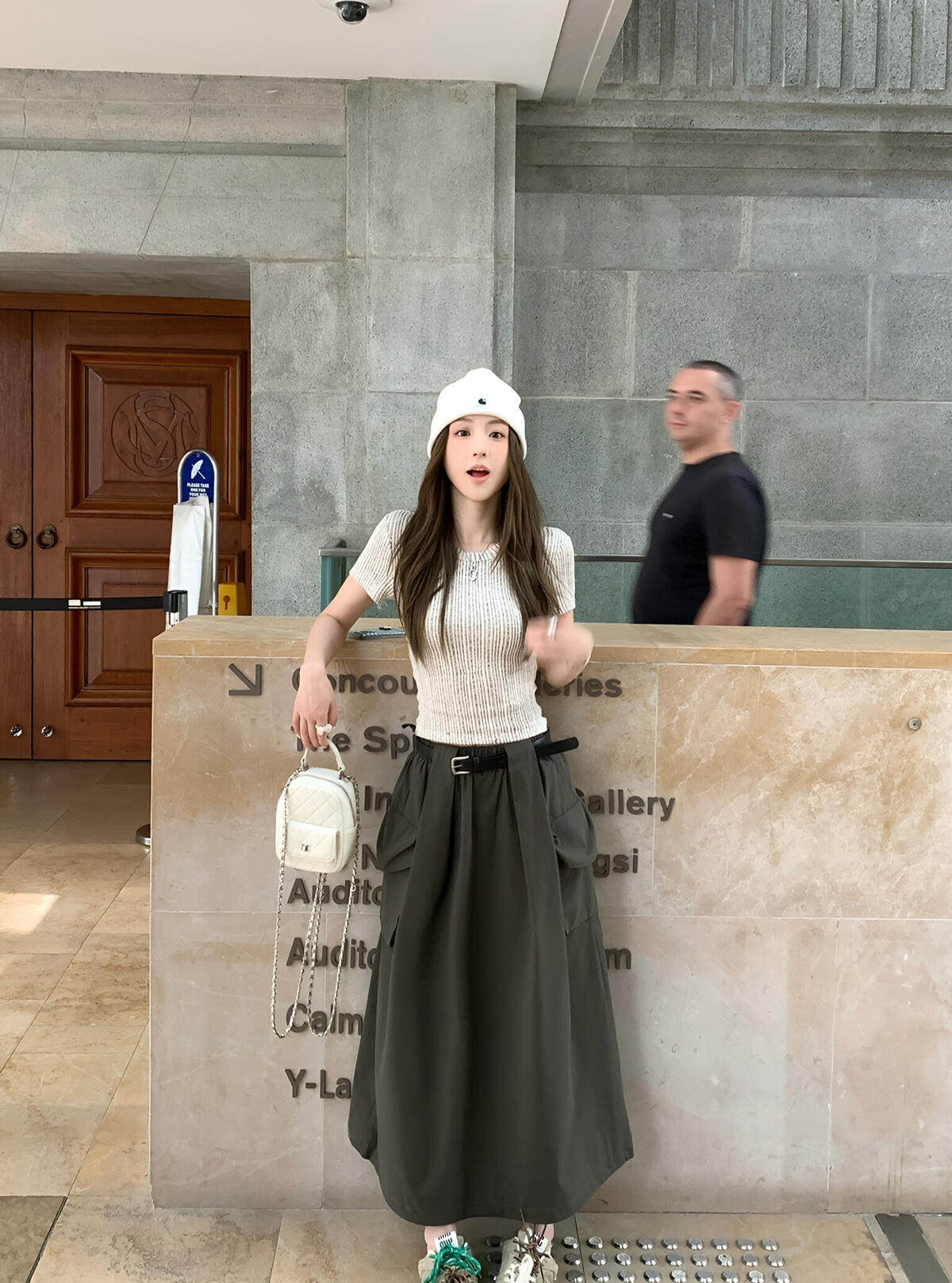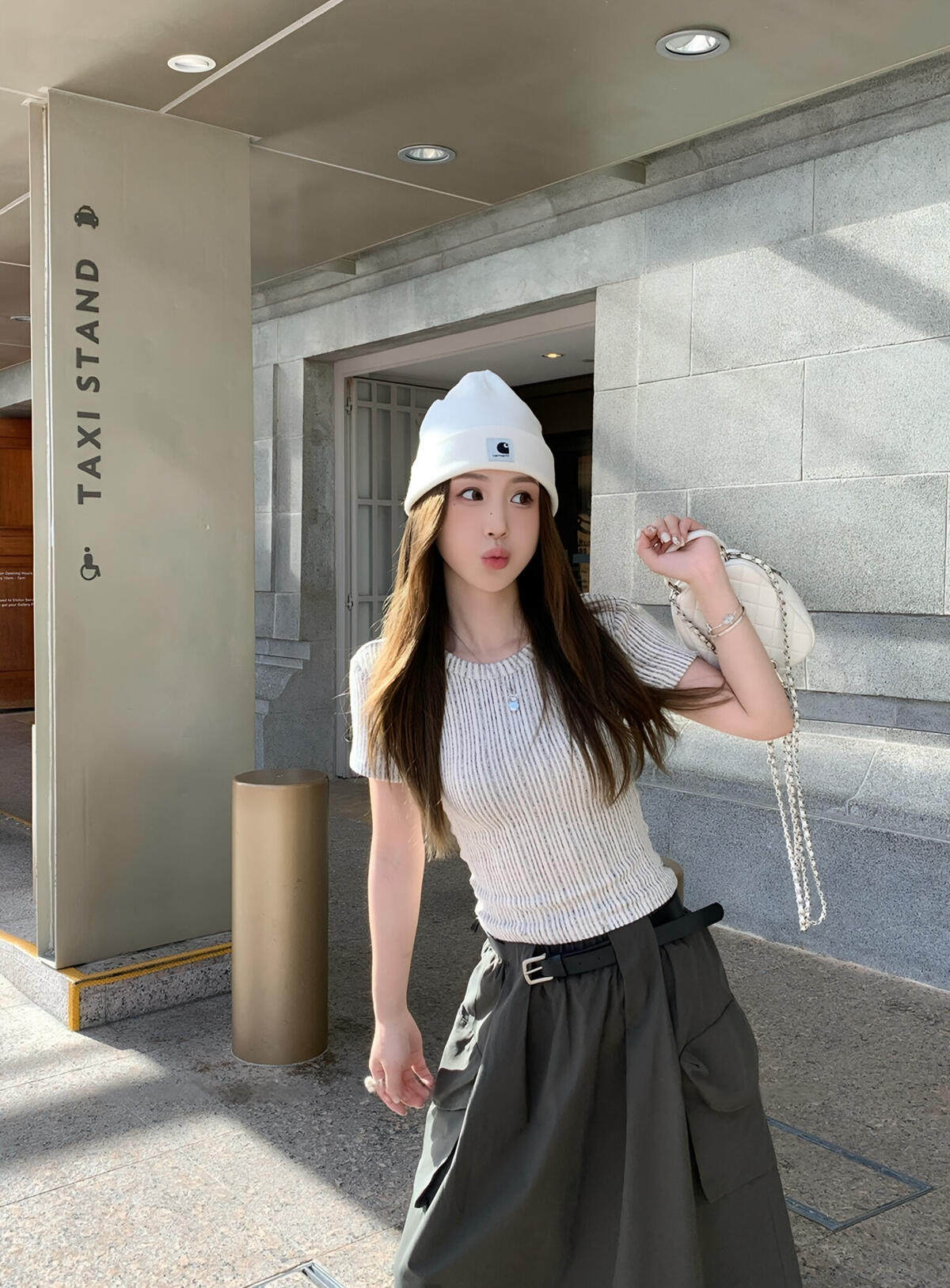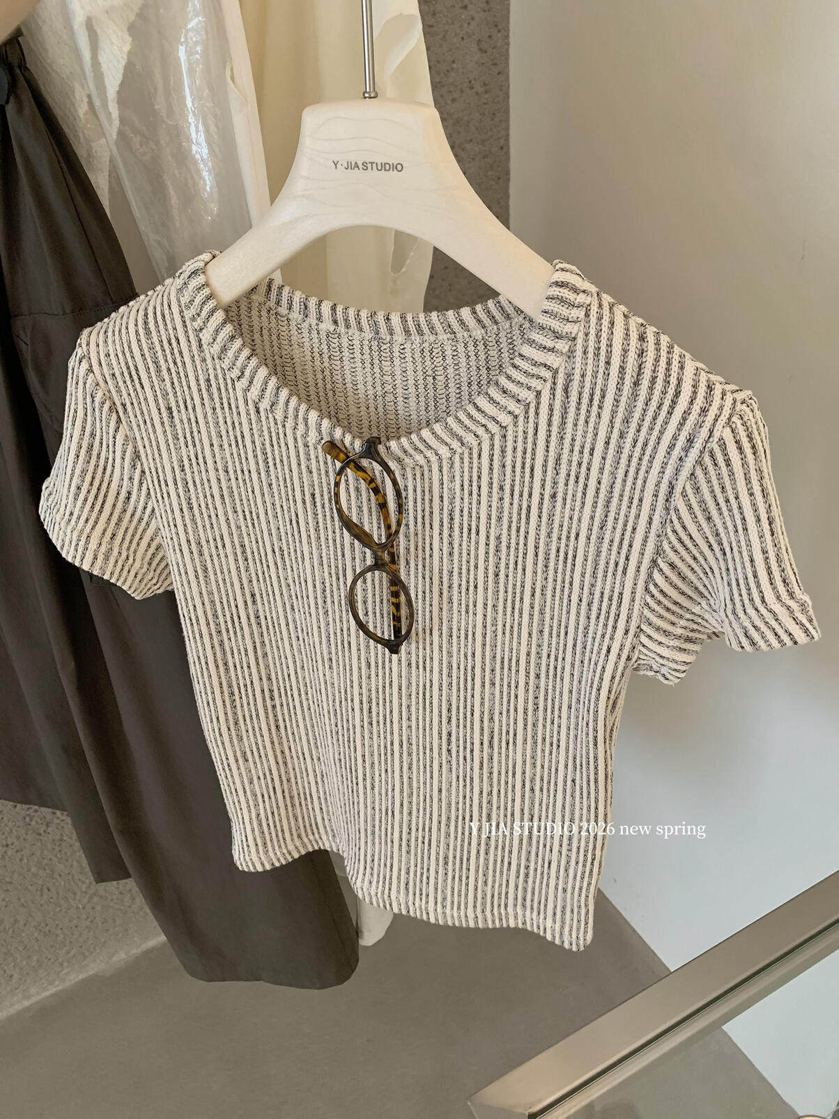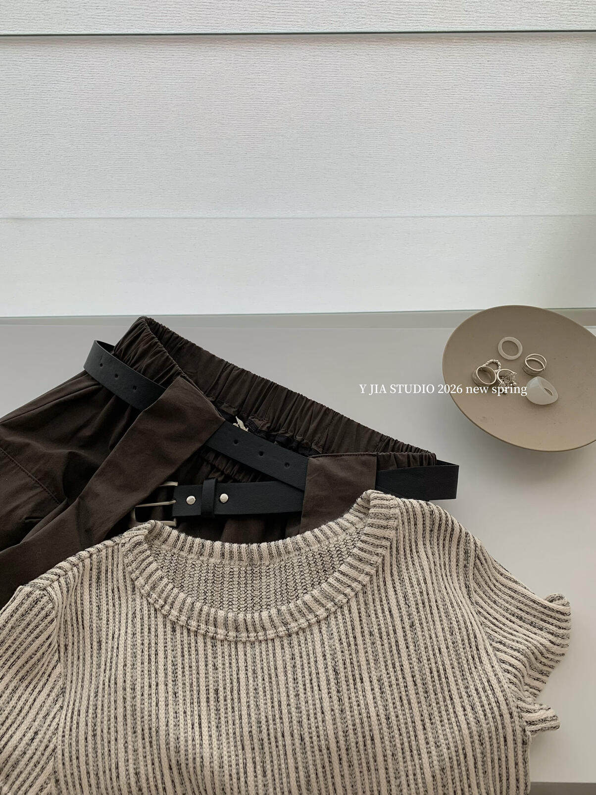 Y.JIA Yijia-облегающая футболка + костюм с рабочей юбкой с карманом и эластичной резинкой на талии (с поясом) Y26-5576