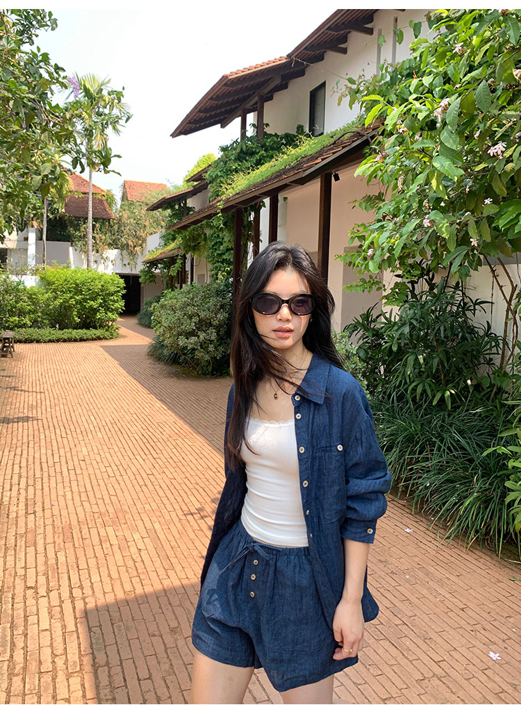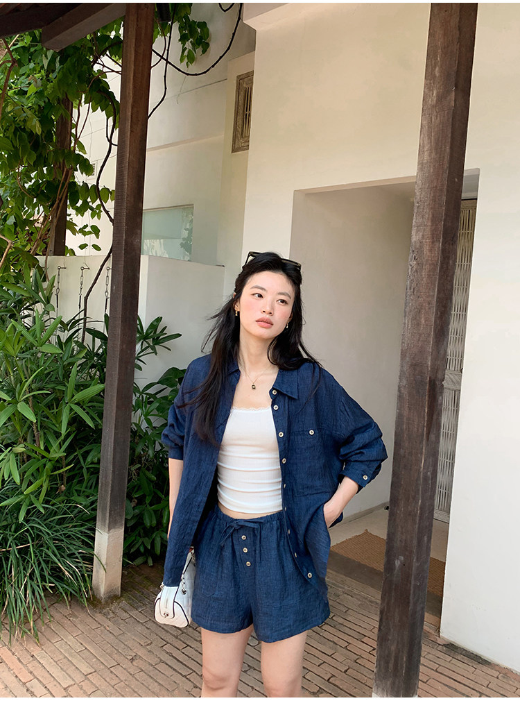 pusumede Комплект, лонгслив, рубашка, штаны, шорты, оверсайз, свободный прямой крой