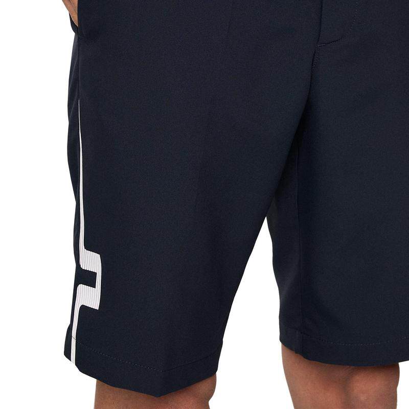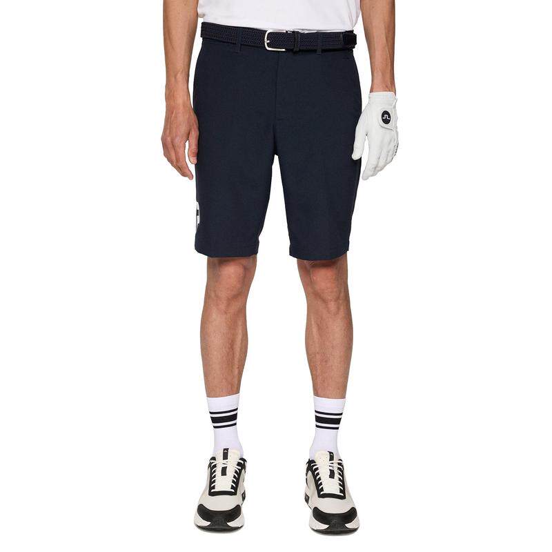 Мужские шорты J.Lindeberg Golf Heath. Классические шорты из влагоотводящей эластичной ткани с ярким логотипом Bridge на штанине. - Передние и задние карманы - Застежка на молнию и пуговицы - Карман для монет - Дышащая ткань. - Быстросохнущая - Полиэстер - Slim Fit - GMPA14451-6855