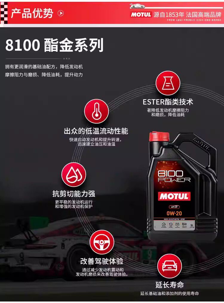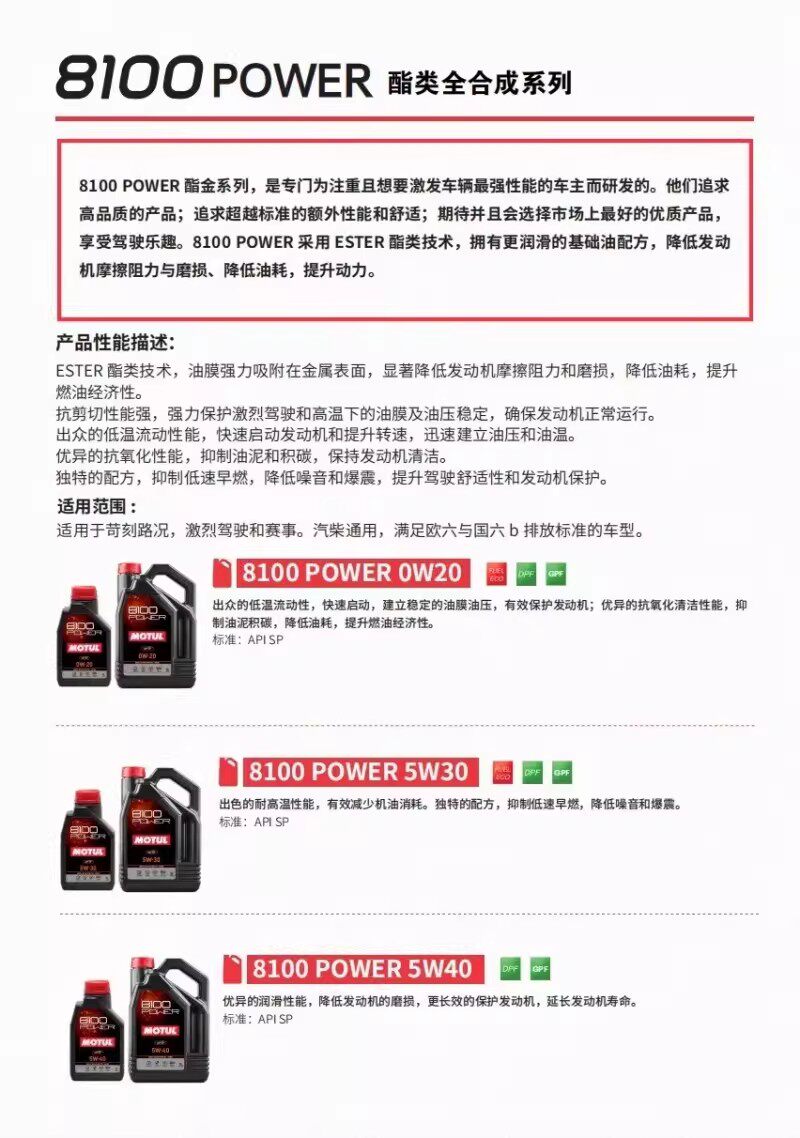 MOTUL 8100 POWER липидное полностью синтетическое моторное масло SP 0W-20 1л/5л