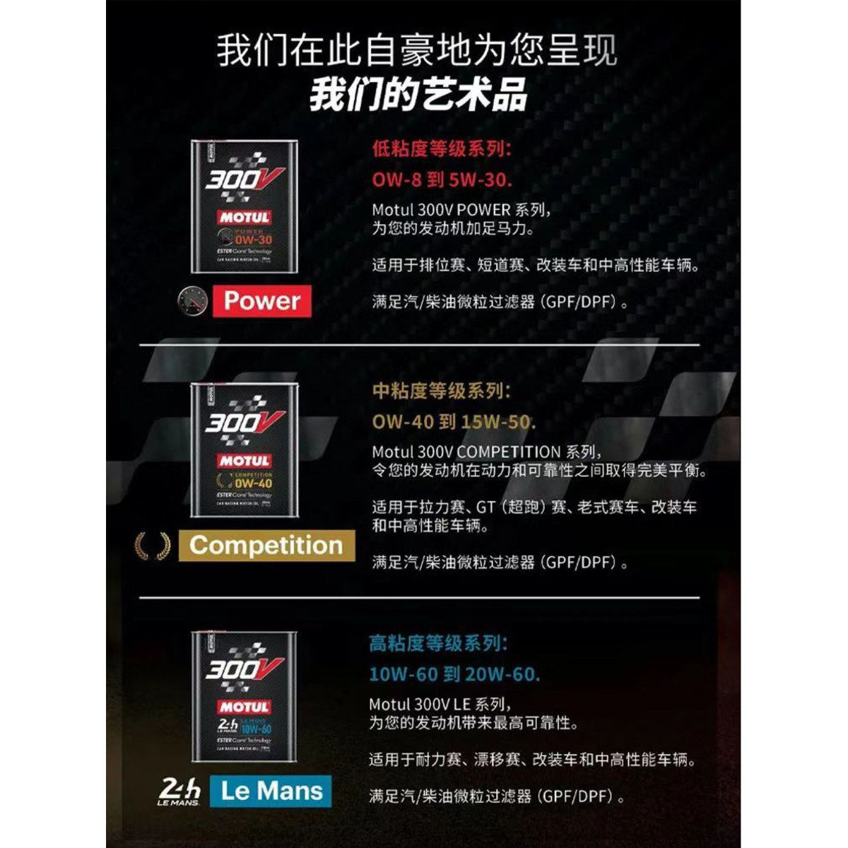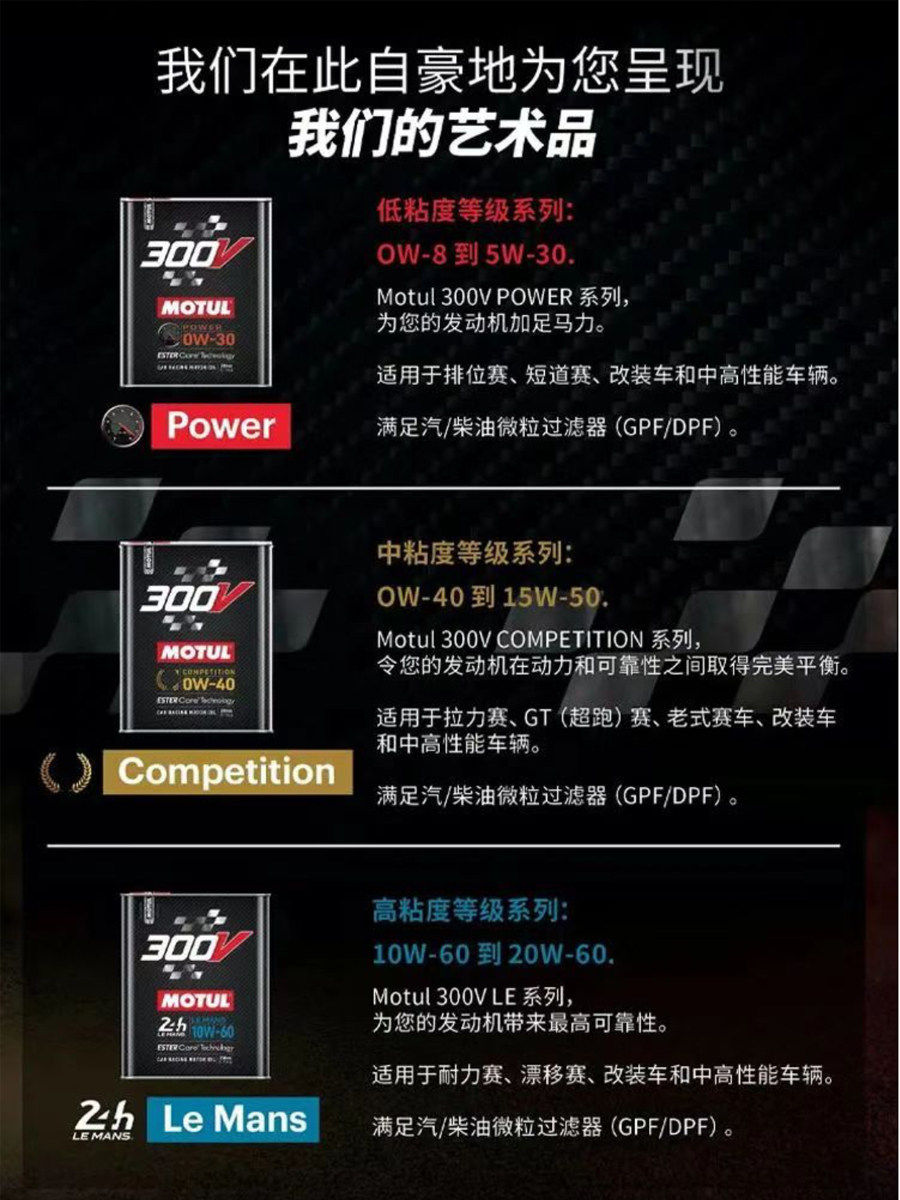 MOTUL, импортированное из Франции, 300V 5W30, полностью синтетическое моторное масло на основе эфиров для гоночных соревнований, с низкой зольностью, стандарт National VI.