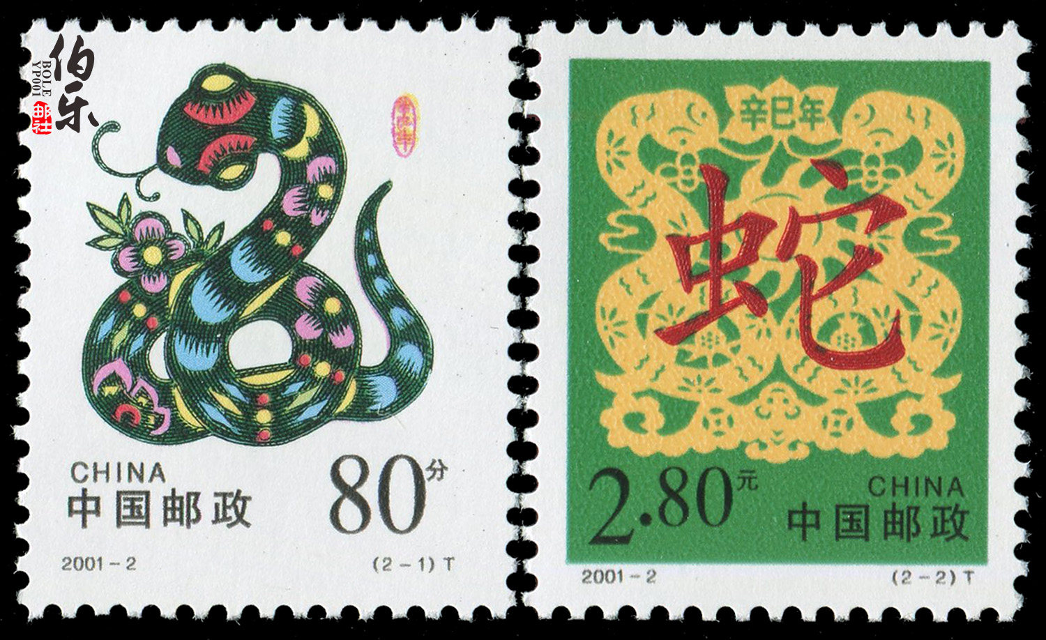 [Bole Post] Набор новых китайских марок со змеей по знаку зодиака 2001-2 2001-2 гг.