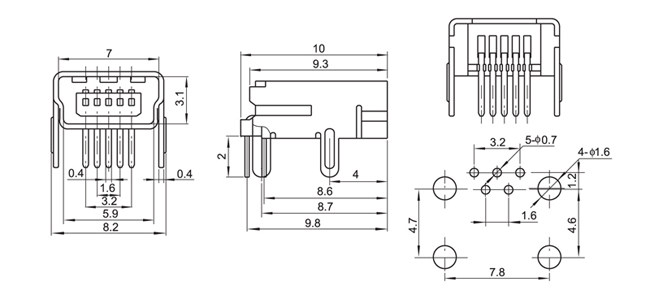 Mini 5p вставка 2/4 позиционирования USB -интерфейс USB Mini 5p Socket 90 -градусный штекер