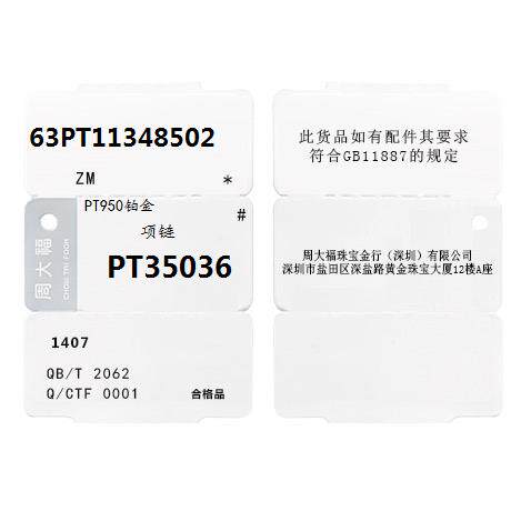 周大福 Слиток, платиновая цепочка, ожерелье, платина 950 пробы, платина 35036 пробы
