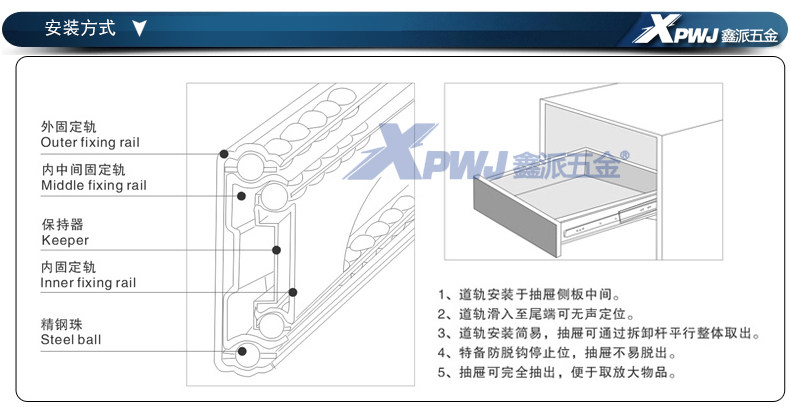法洛尼 Шкаф шкаф шкаф шкаф Слэйд трехсекционный рельс -ящик