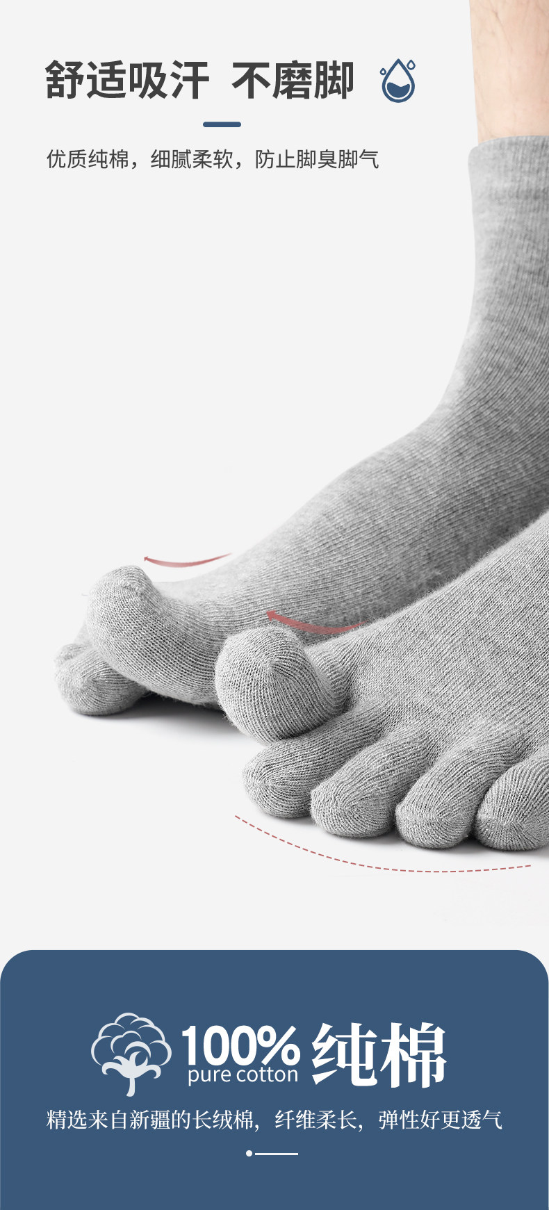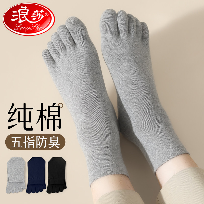 浪莎 Хлопковые гольфы, носки для пальцев на ноге, впитывают пот и запах, средней длины