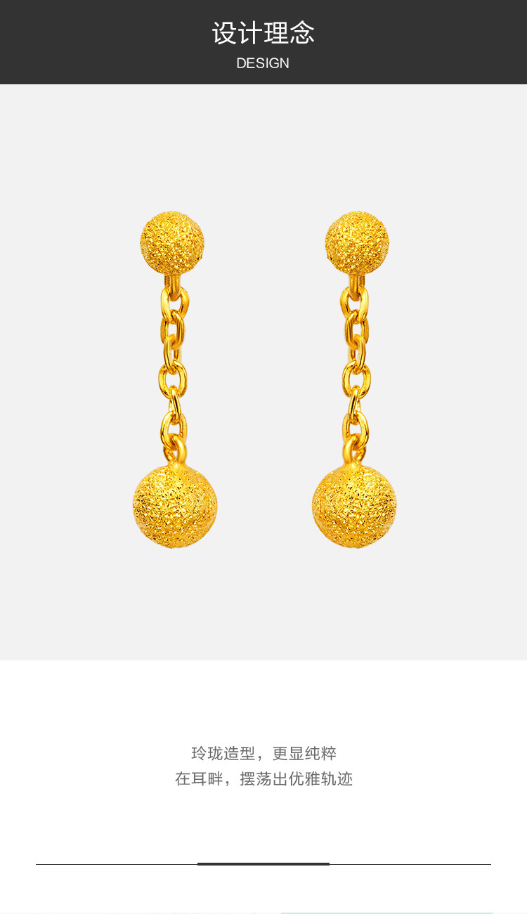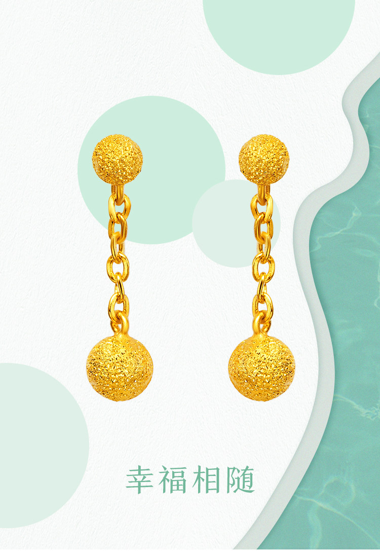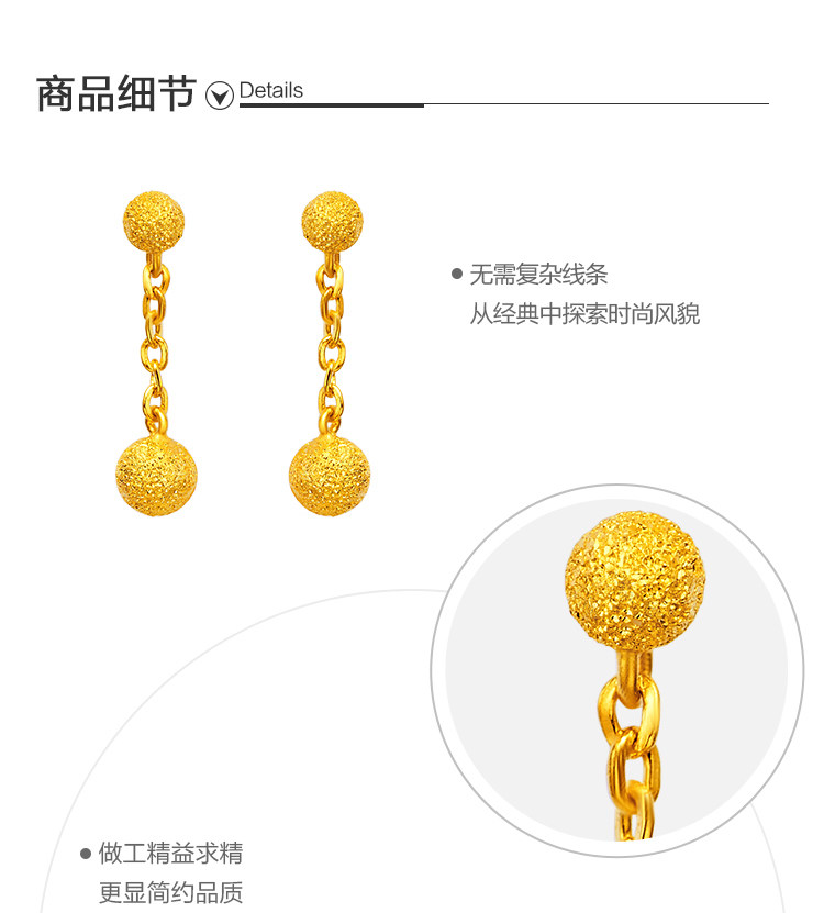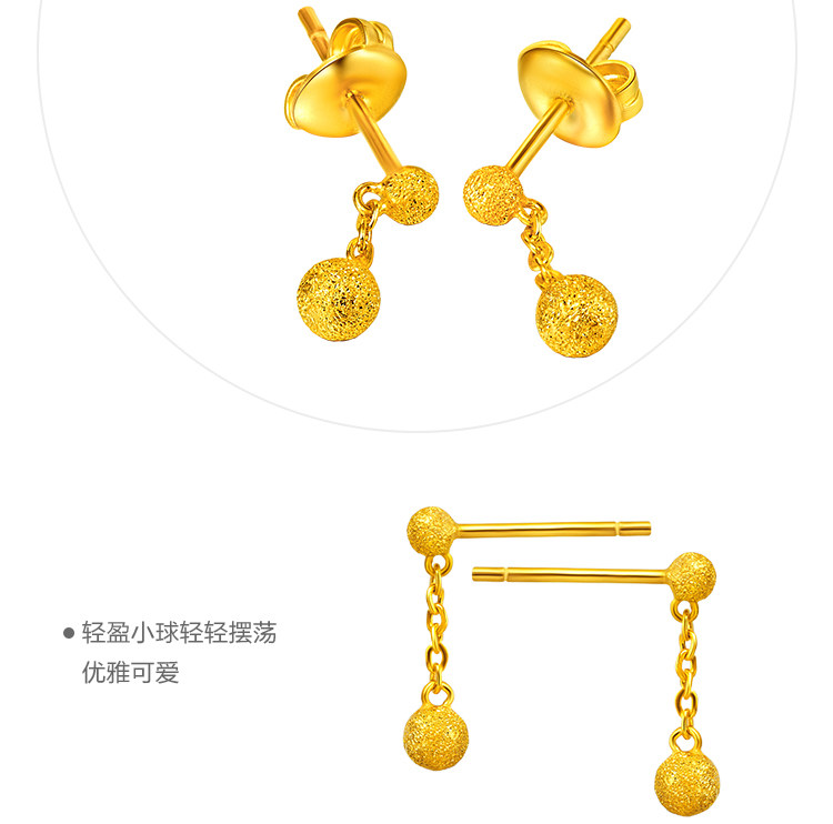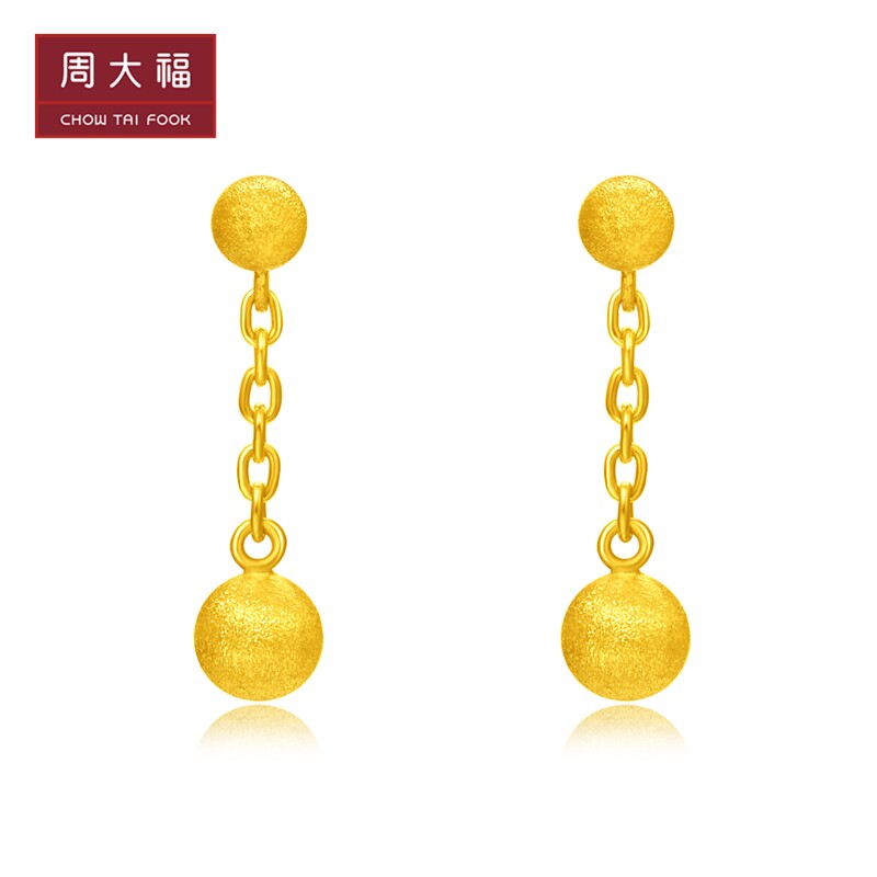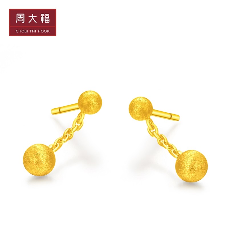 周大福 Ювелирное украшение, элегантное золотое украшение-шарик, серьги