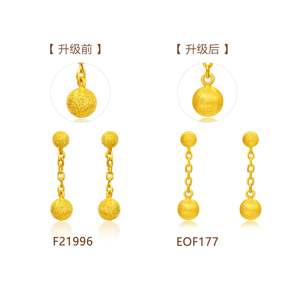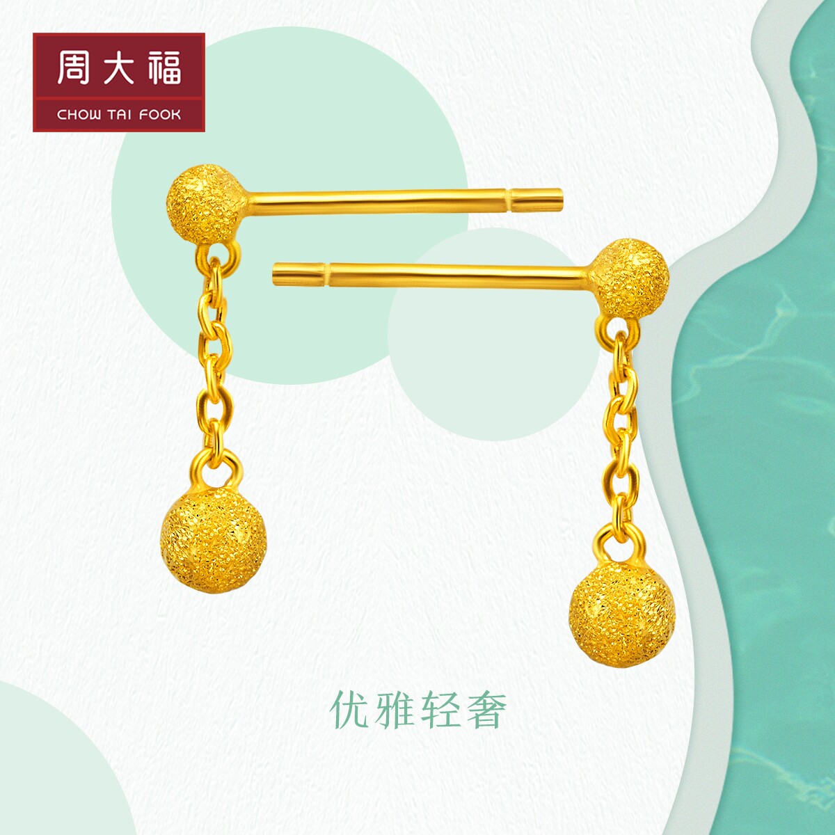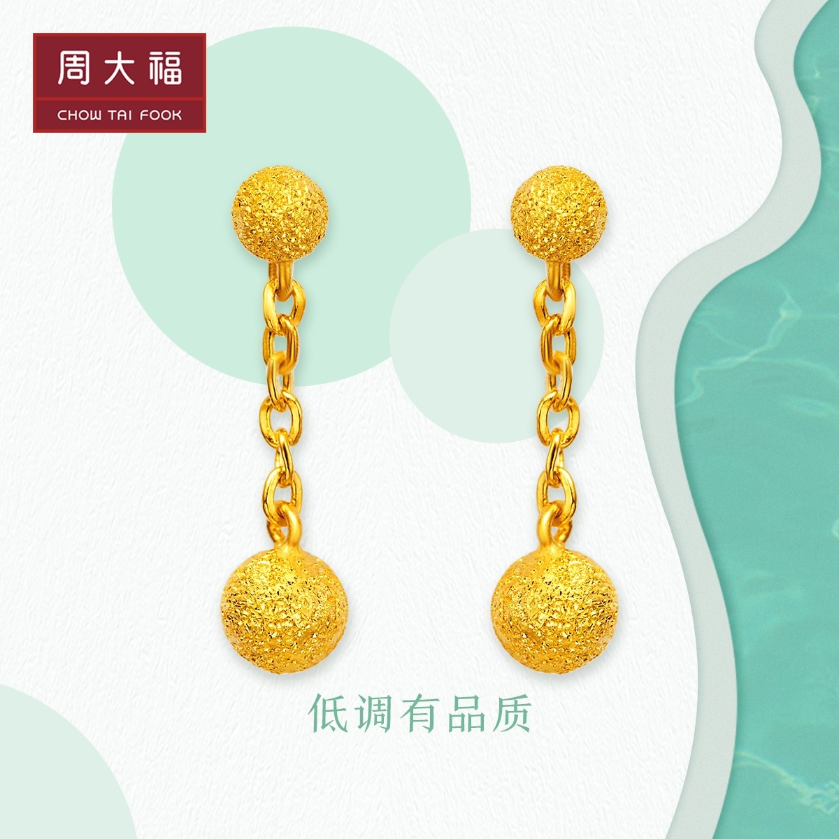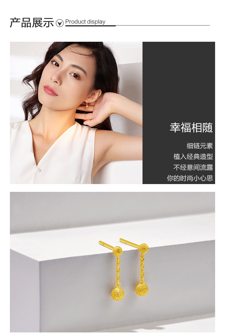 周大福 Ювелирное украшение, элегантное золотое украшение-шарик, серьги