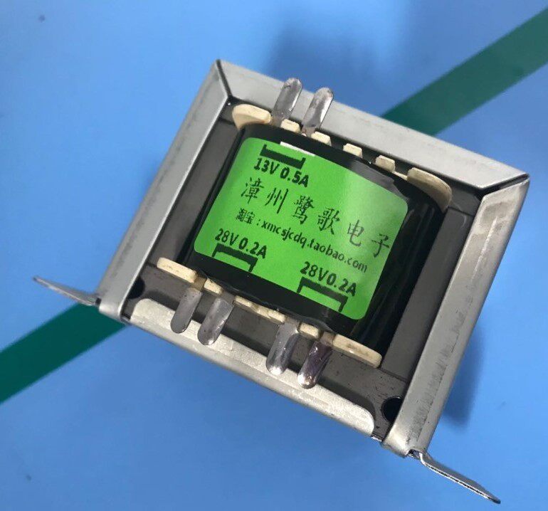 Вход переменного тока 220 В, две линии.Выводит три набора напряжений, три независимые обмотки и шесть выводов.Среди них два двойных провода на 28 В намотаны параллельно.Напряжение указано на трансформаторе для облегчения идентификации и использования.