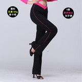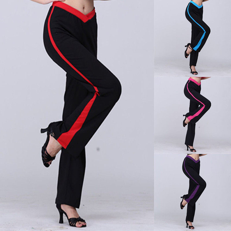 Женщина для взрослых квадратные латинские фитнес -коллективные танцевальные брюки брюки брюки брюки вилка талия с широкой полосовой расклешенной брюки бесплатная доставка