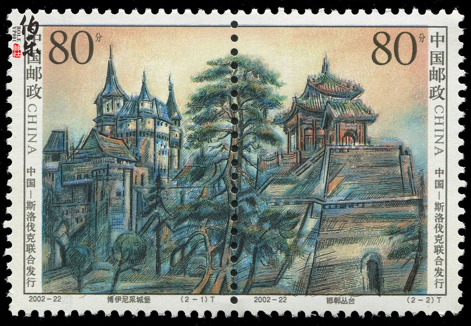 «Poste Agency» 2002-22 павильона и замка марки Китая и Словакии