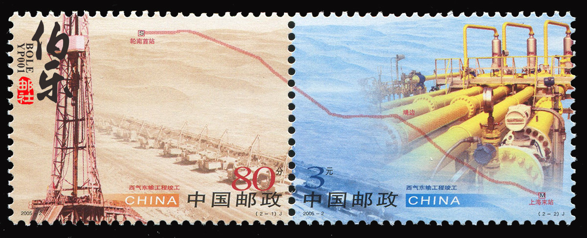 Памятные марки «Почтамт Боле» 2005-2 «Завершение проекта транспортировки газа Запад-Восток» Новые марки Китая