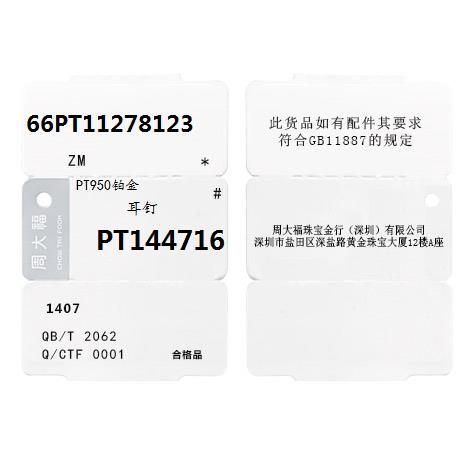 周大福 Ювелирное украшение, платиновые серьги, платина 950 пробы, платина 144716 пробы