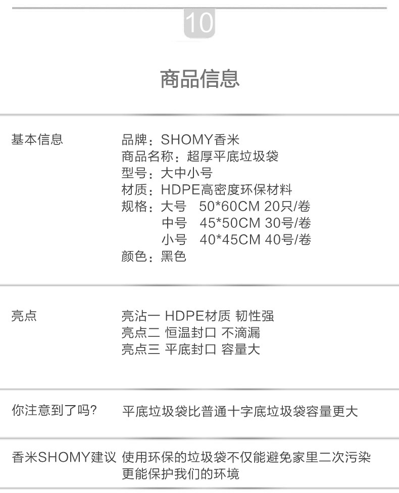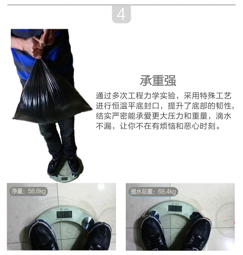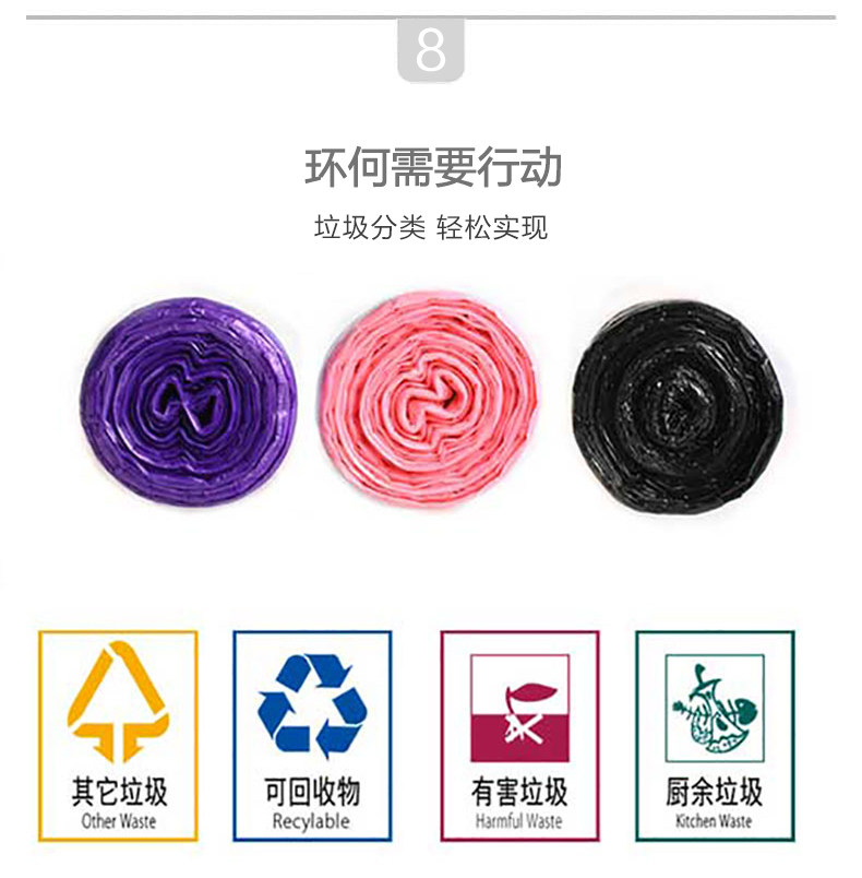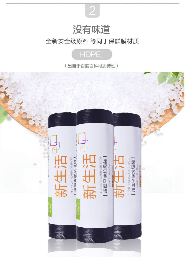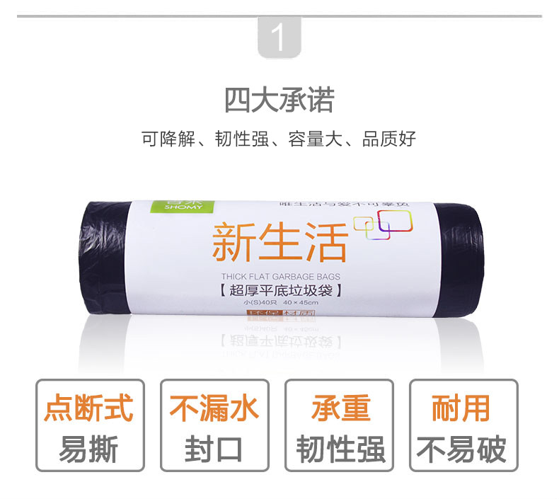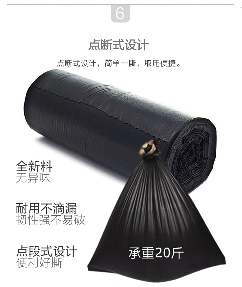 Черный одноразовый пластиковый маленький мусорный мешок, увеличенная толщина