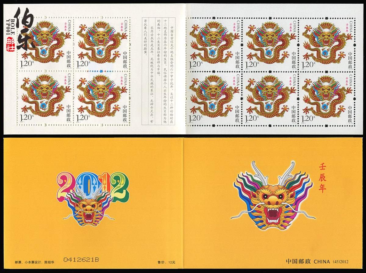 [Bole Post News Agency] SB-45 2012-1 Трехколесный зодиак Дракон Дракон с малыми штампа Дракон маленькая книга