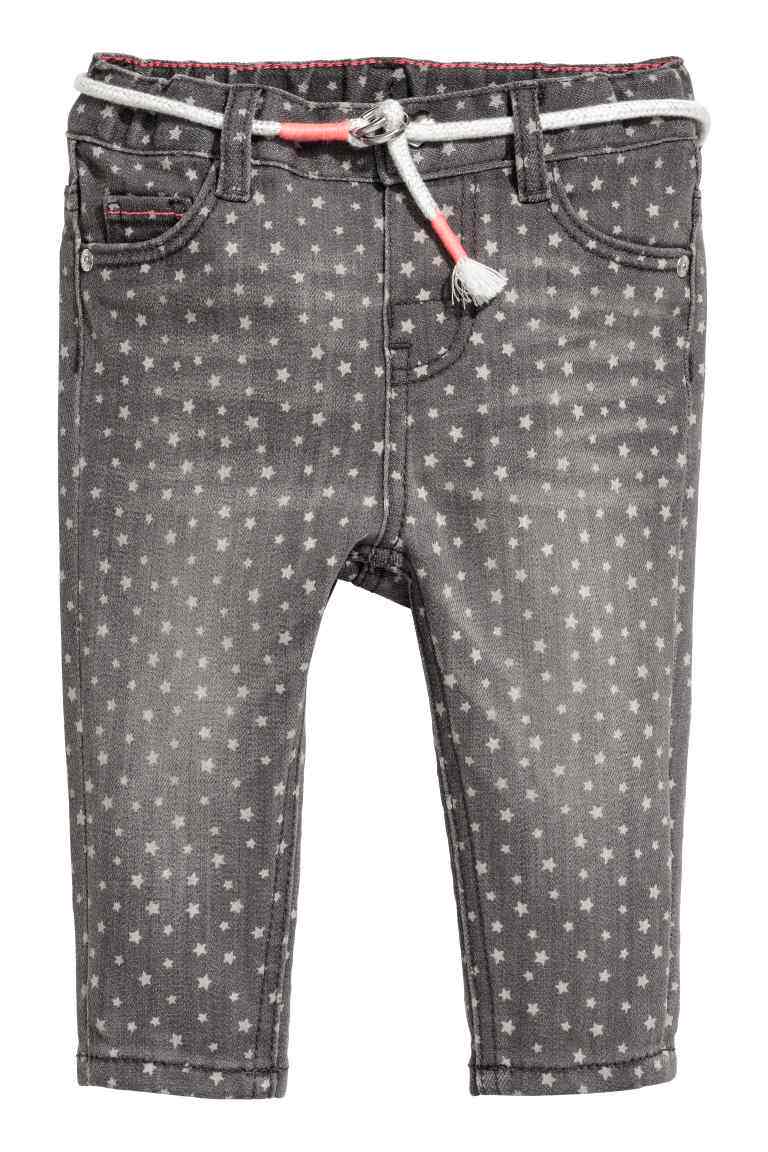 Джинсы из суперэластичной ткани с 5 карманами и узором в виде звезд, регулируемым эластичным поясом и ложной ширинкой на кнопках.