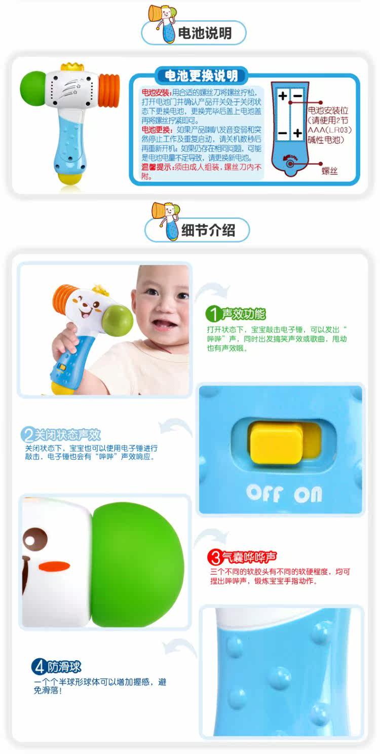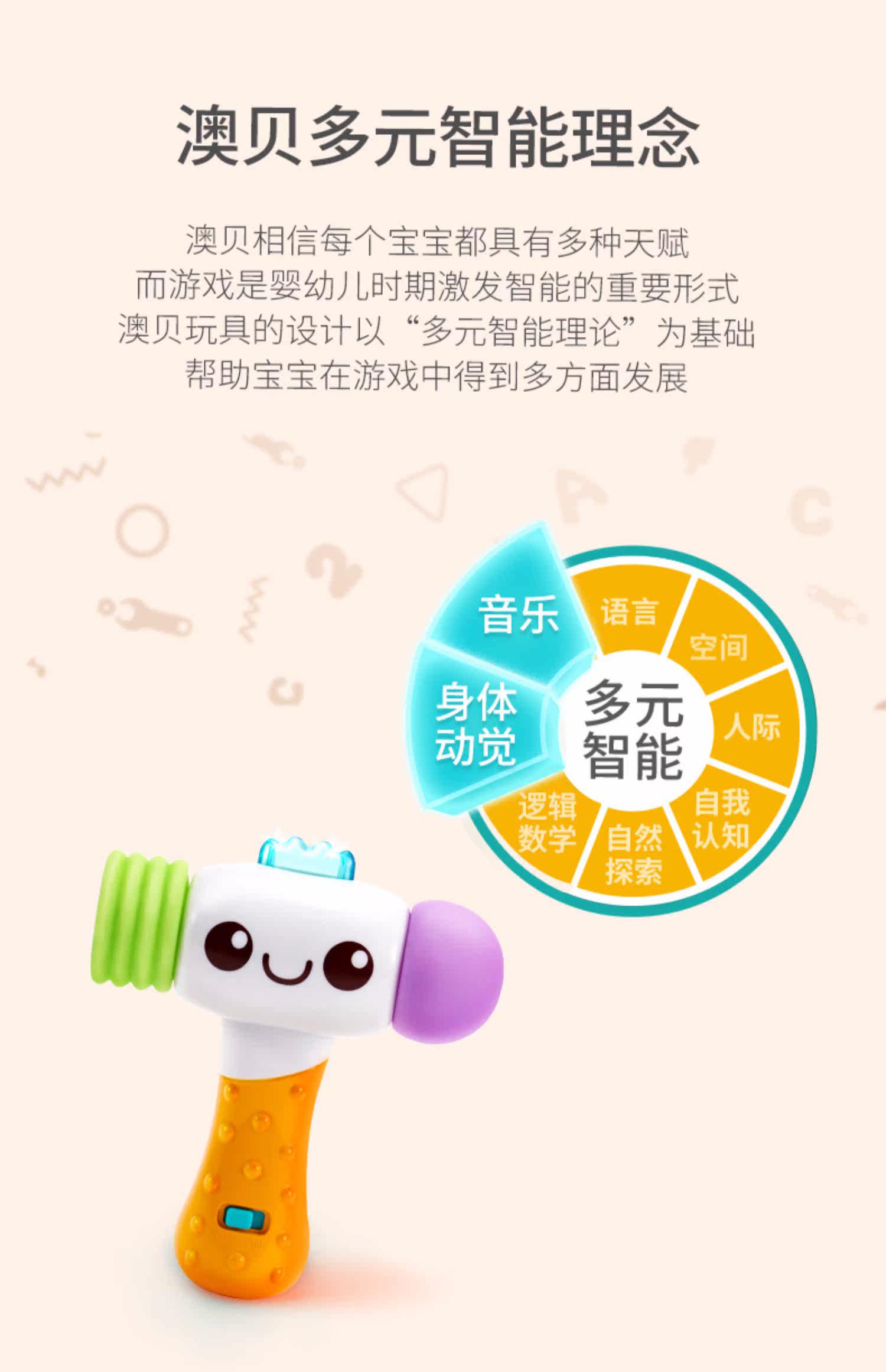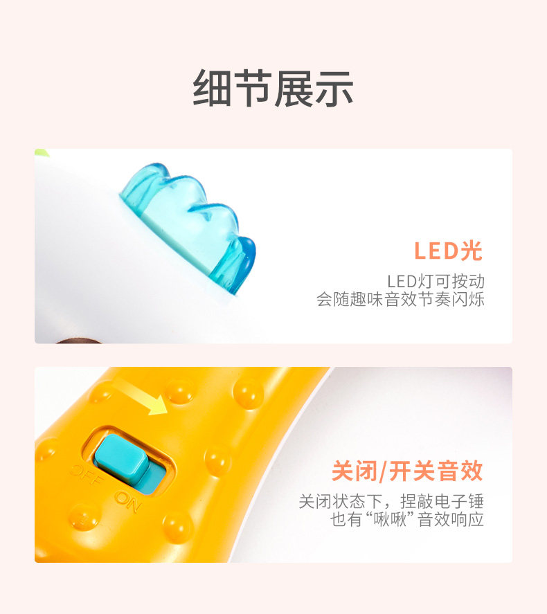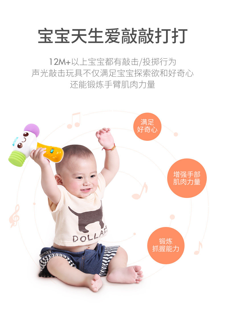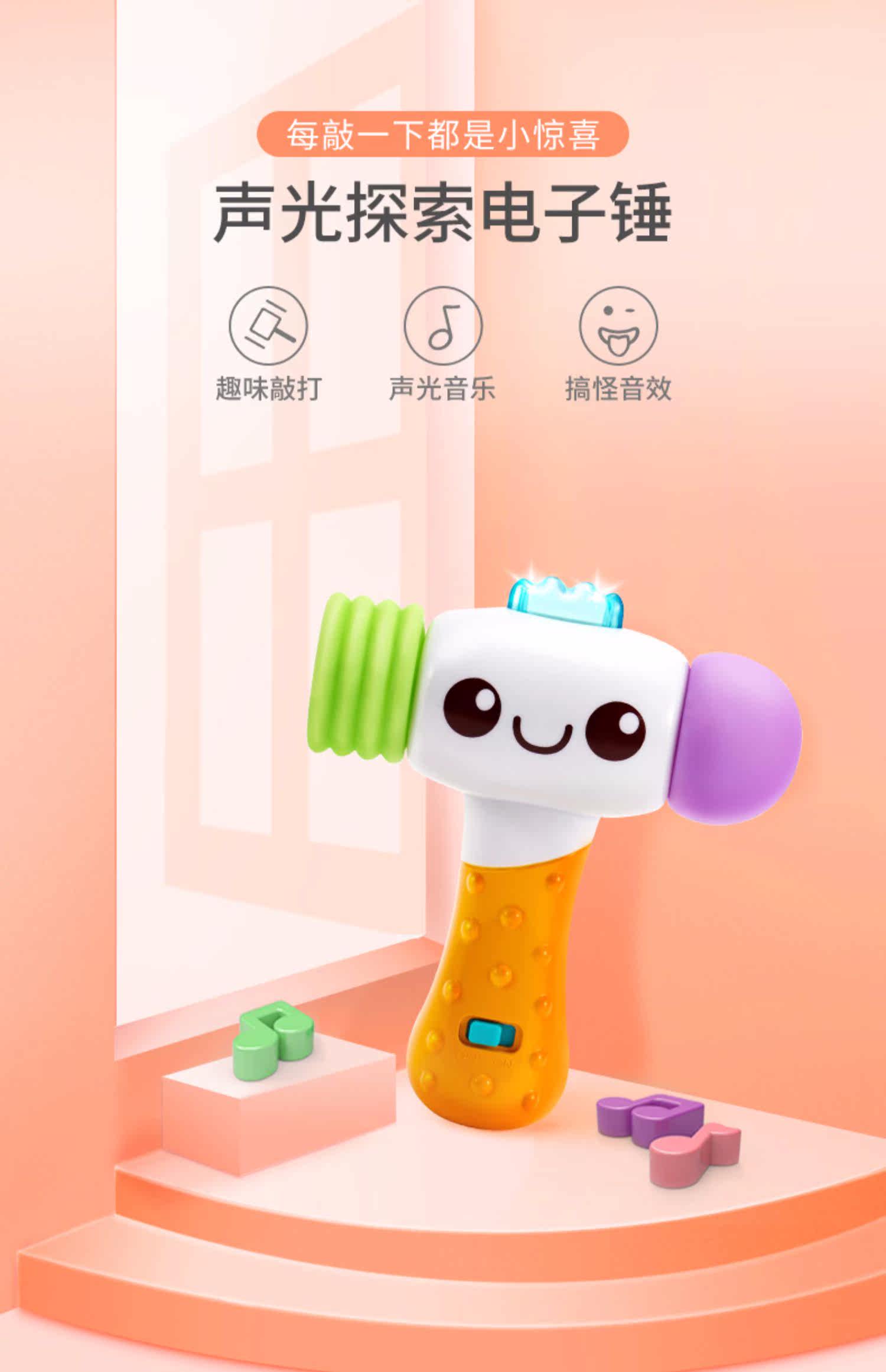 Электронный музыкальный молоток со светомузыкой, интеллектуальная игрушка, 12 мес.