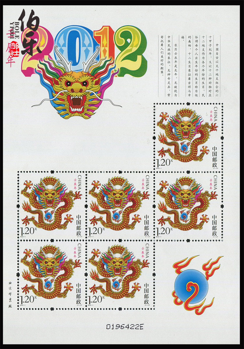 Примечание. В то же время, версия штампа «Год ренчена» (все число: 4; 4; вся спецификация: 120&Раз; 130 мм), как особый подарок для специальных марков 2012 года, будоральный подарок.