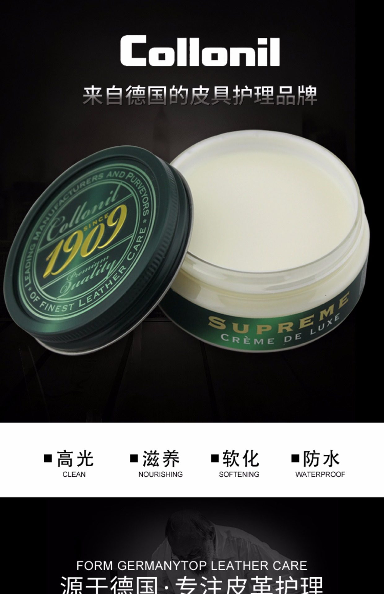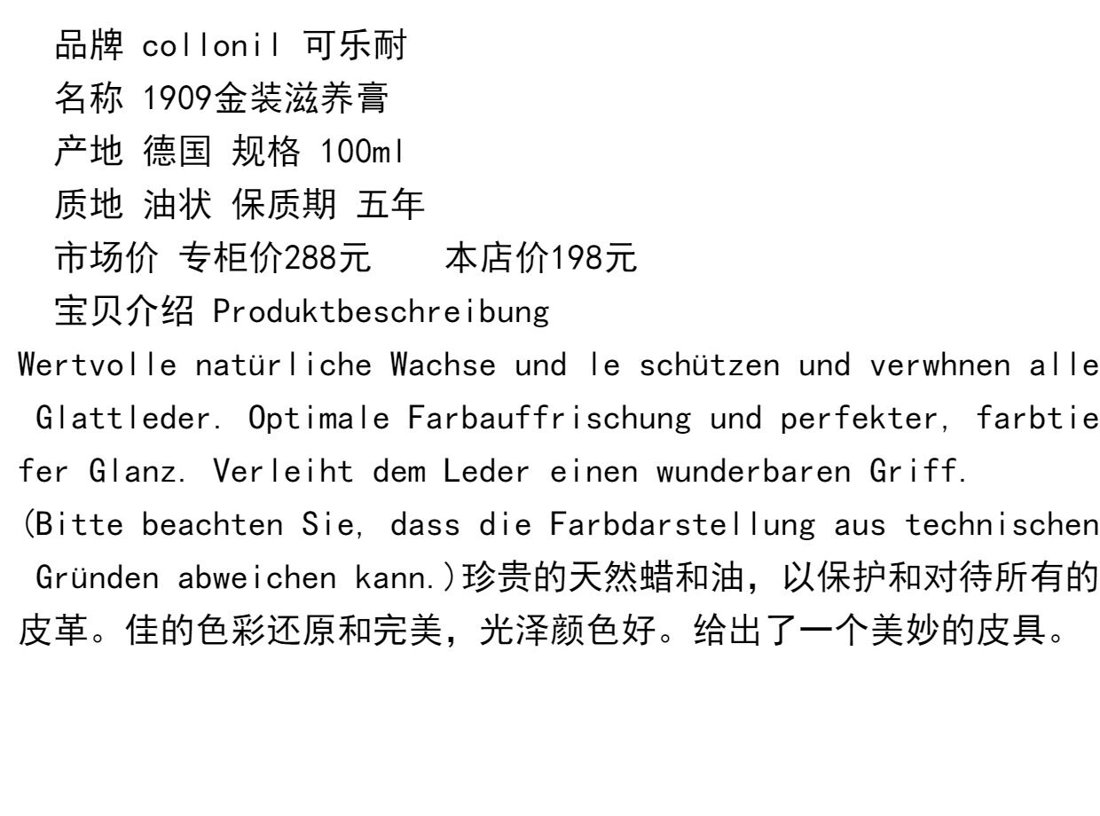 Cola Renewal Collonil Импорт масло обуви 1909 черная бесцветная кожаная кожаная кожаная кожа кожа кожа