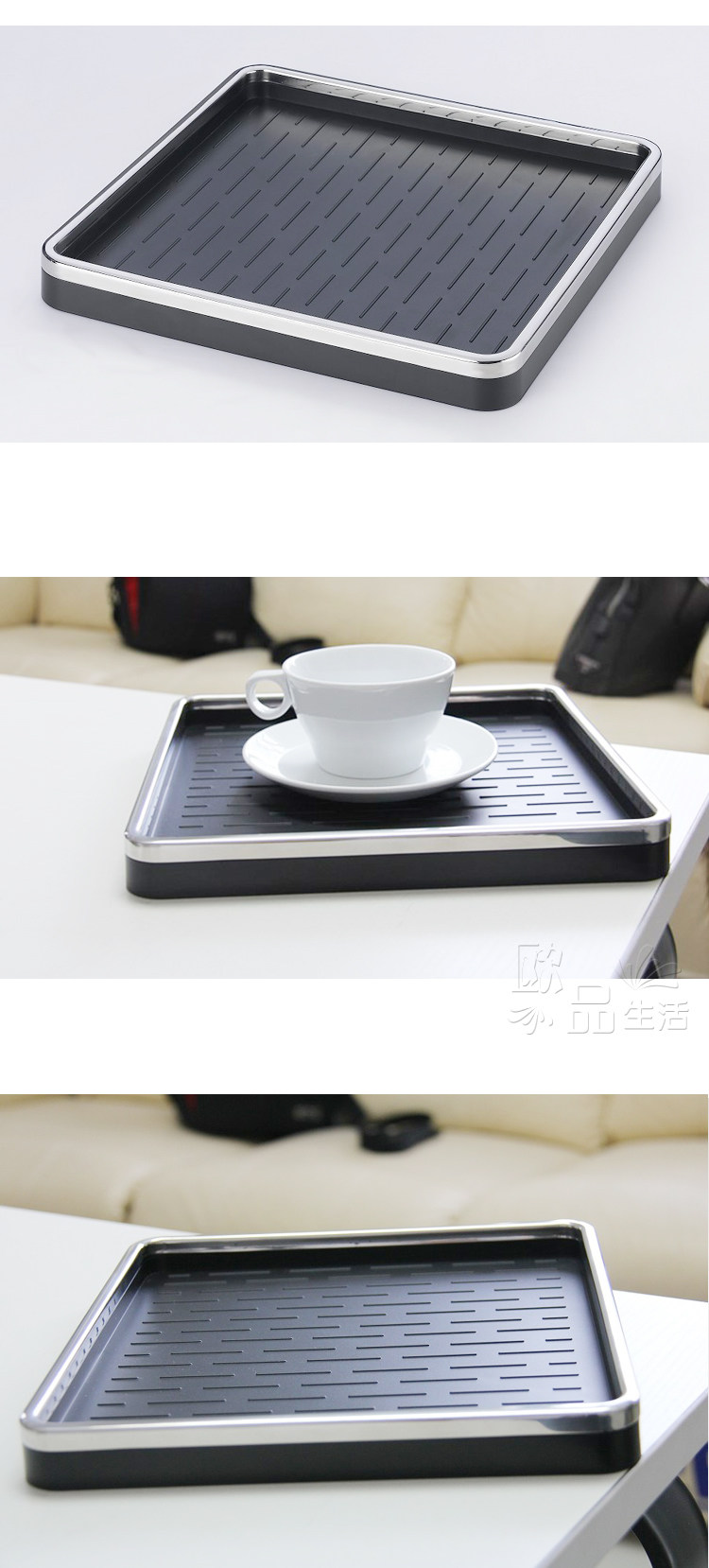 Этот новый поднос разработан с помощью пульсации в форме позвоночника в нижней части тарелки, чтобы увеличить трение между дном чашки и посуды, подчеркивая гладкую и безопасность траха при ходьбе.Материал в нижней части пластины изготовлен из твердого черного пластика, а края пластины из нержавеющей стали широкой боковой стороны образуют сплошную конструкцию в H -образе. В дополнение к поддержанию теплоизоляционного эффекта чашки и рабочего стола. Не деформируется из -за марионеток.