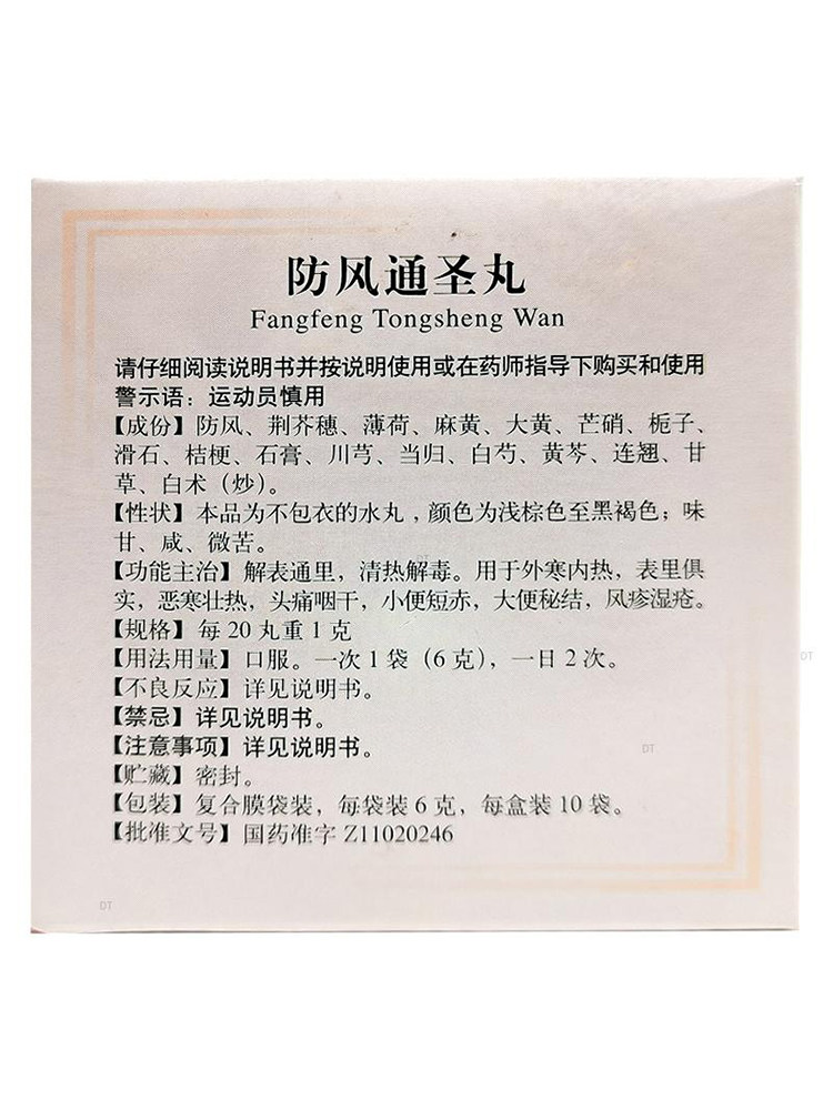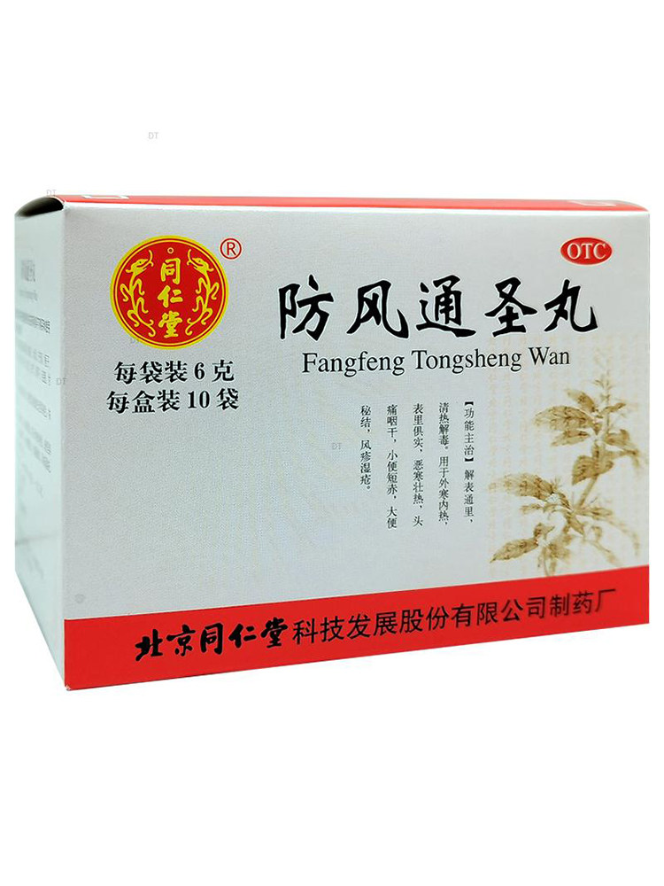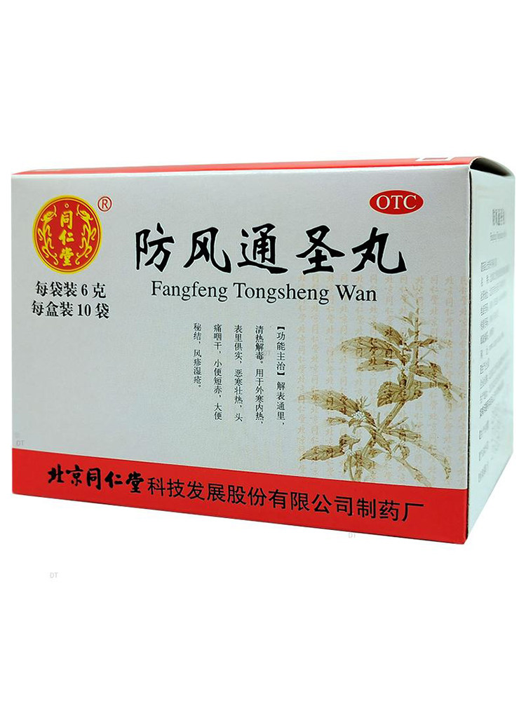 Пекинские таблетки Tongrentang Fangfeng Tongsheng 10 пакетиков традиционной китайской медицины для снятия жара и детоксикации, головной боли, сухости в горле, запоров, краснухи и настоящей экземы