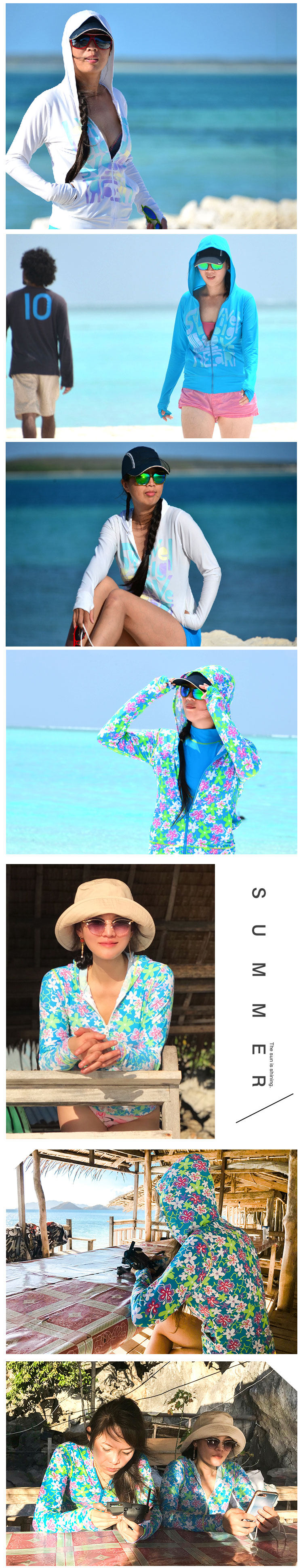 Быстросохнущая пляжная куртка для плавания, тонкая толстовка с капюшоном подходит для мужчин и женщин, защита от солнца, для влюбленных, семейный стиль, цветочный принт