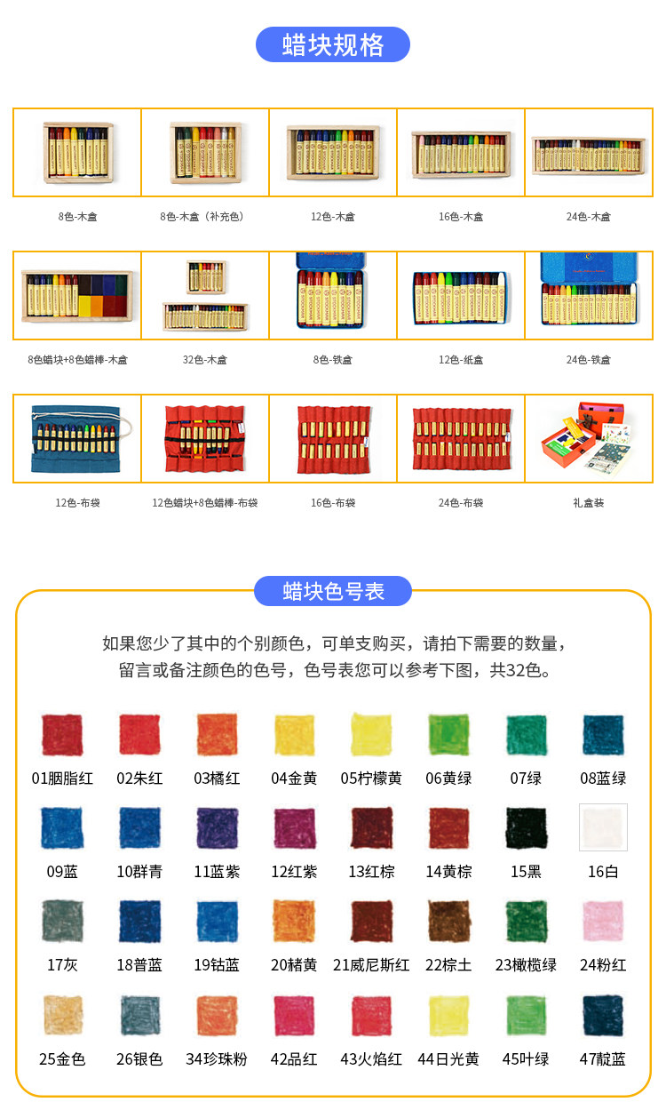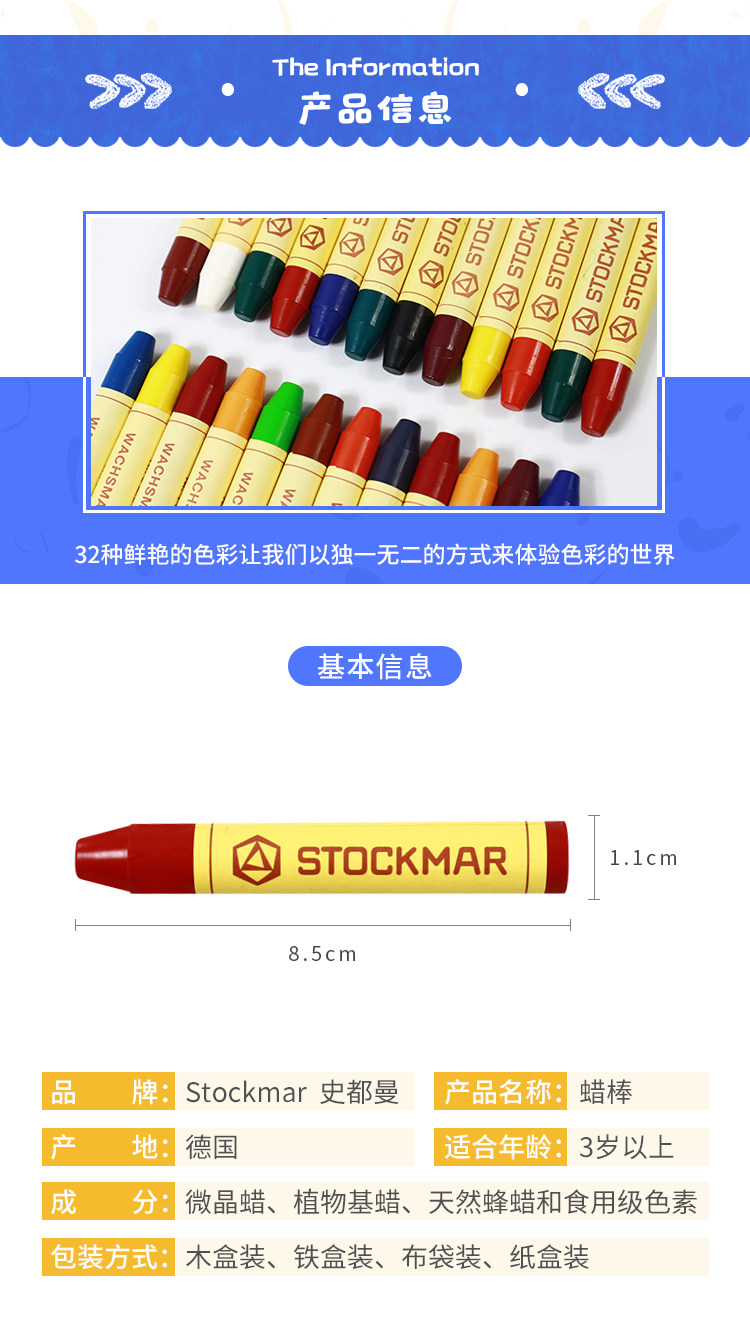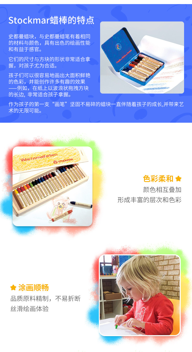 Waldorf Living Museum Germany Stockman Spoctmar Безопасность и неоксическая живопись восковая палочка Crayon 8 Цвета/Деревянная коробка установка