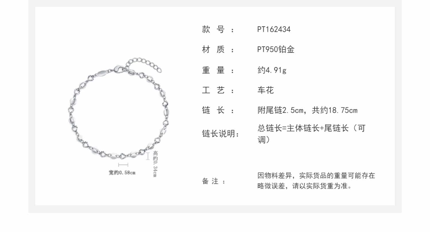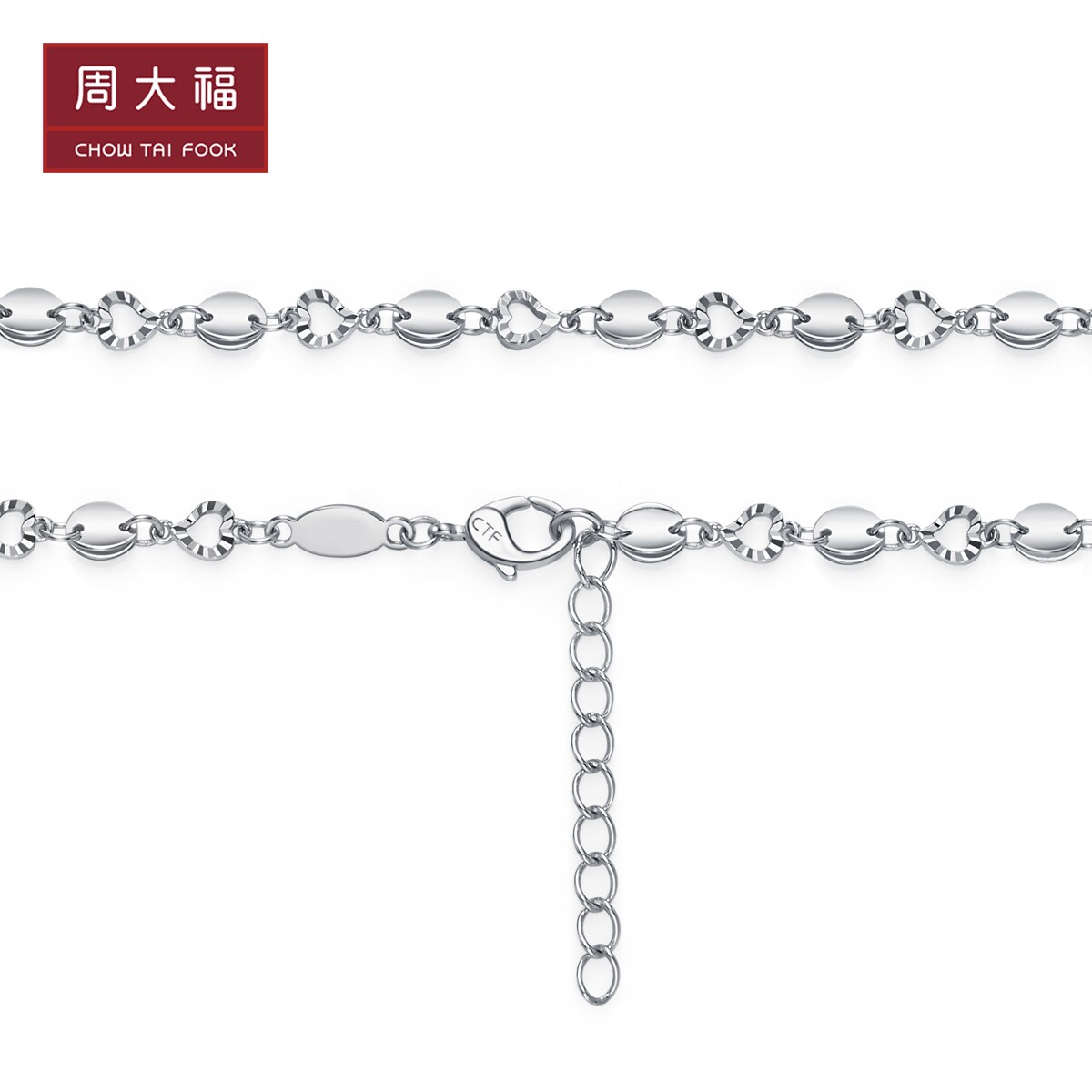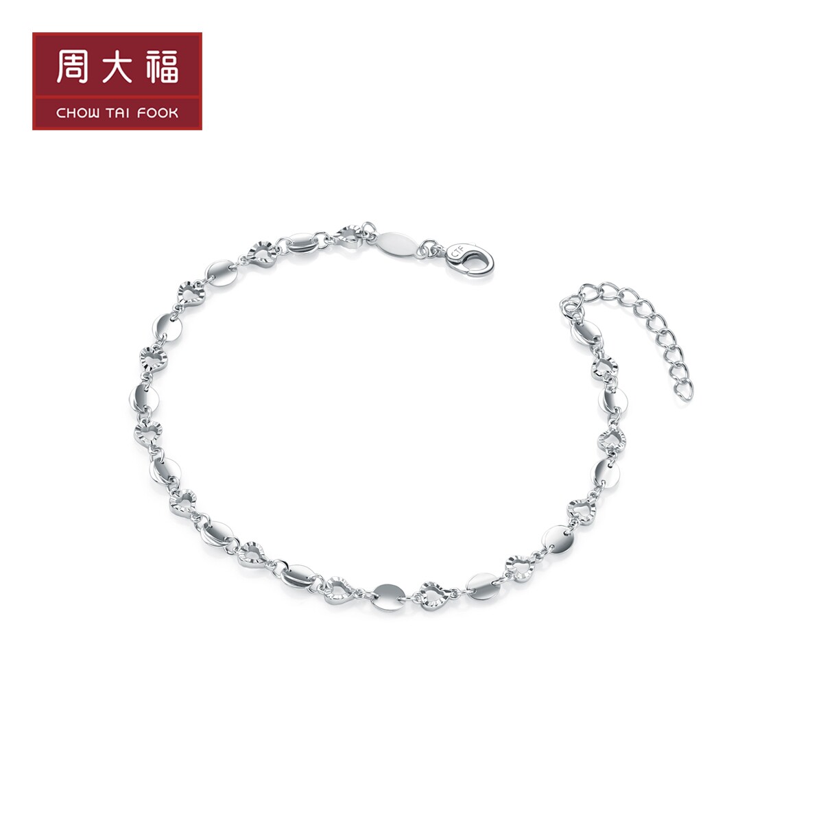 周大福 Платиновый браслет в форме сердца, платина 950 пробы, платина 162434 пробы