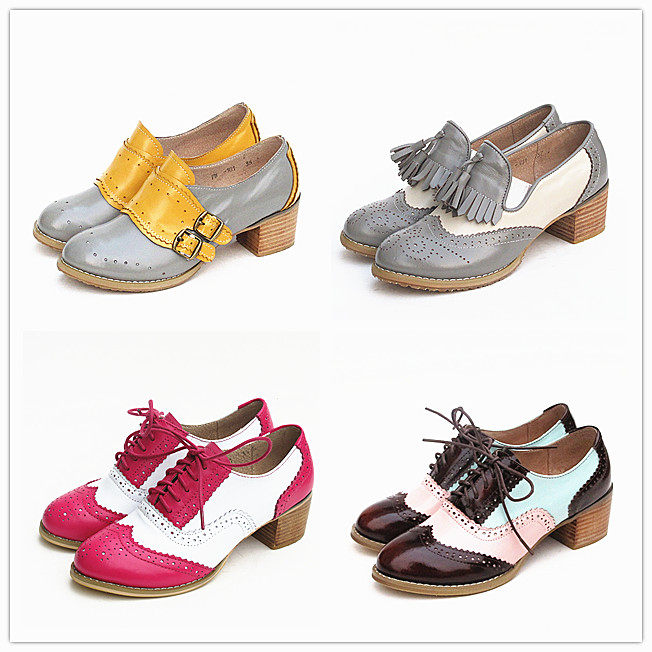 Ретро оксфорды в английском стиле, журнал, из натуральной кожи, европейский стиль