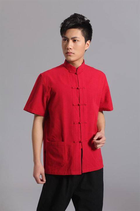 Хлопковая базовая приятная телу рубашка, китайский стиль