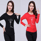 БЕСПЛАТНАЯ ДОСТАВКА Новая базовая рубашка, современная латынь, дружба, танца, танцевальная одежда, длинное кружево, круглая шея