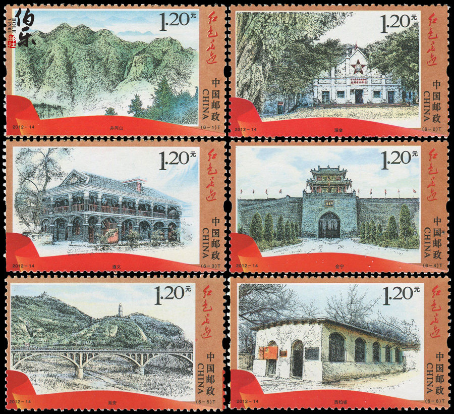 China Post планирует выпустить 6 специальных марок для «красного следа» 30 июня 2012 года.Подробности следующие: