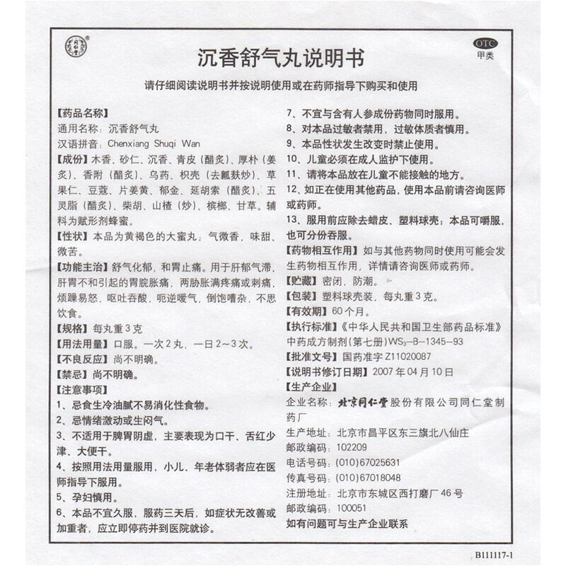同仁堂 Agarwood Shuqi таблетки 3G*10 таблетки и боль в животе, боли, боли, рвота, рвота, рвота и кислая диета