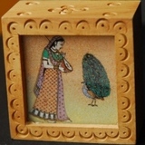 На картине изображены индийские дамы и павлины.