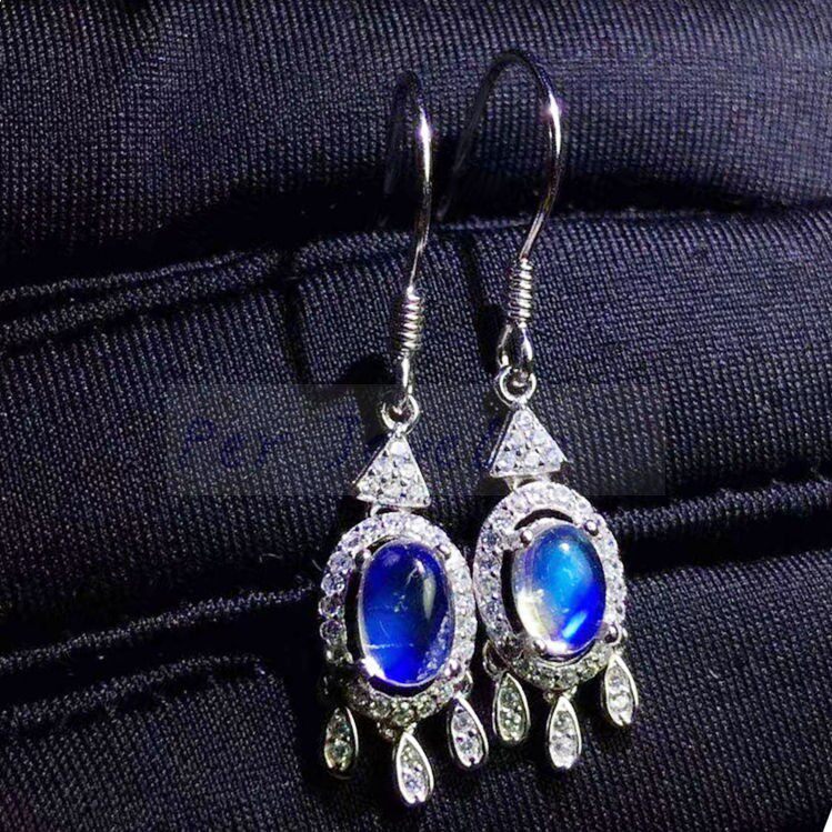 Синие платиновые серьги из нефрита, лунный камень, серебро 925 пробы, белое золото 18 карат, J941956