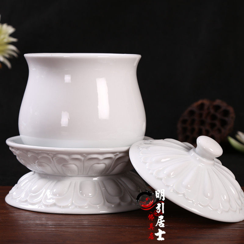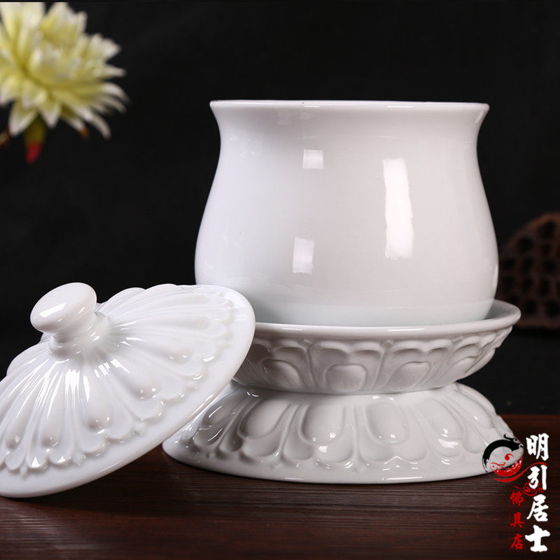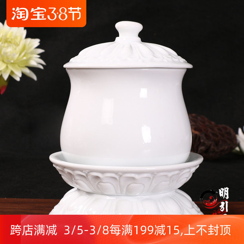 Мингин буддийский храм продукты лотос без словесных белых керамиков дополнительная чашка водоснабжения пурпурная чашка священная вода чашка настоящая золотая плюс плюс