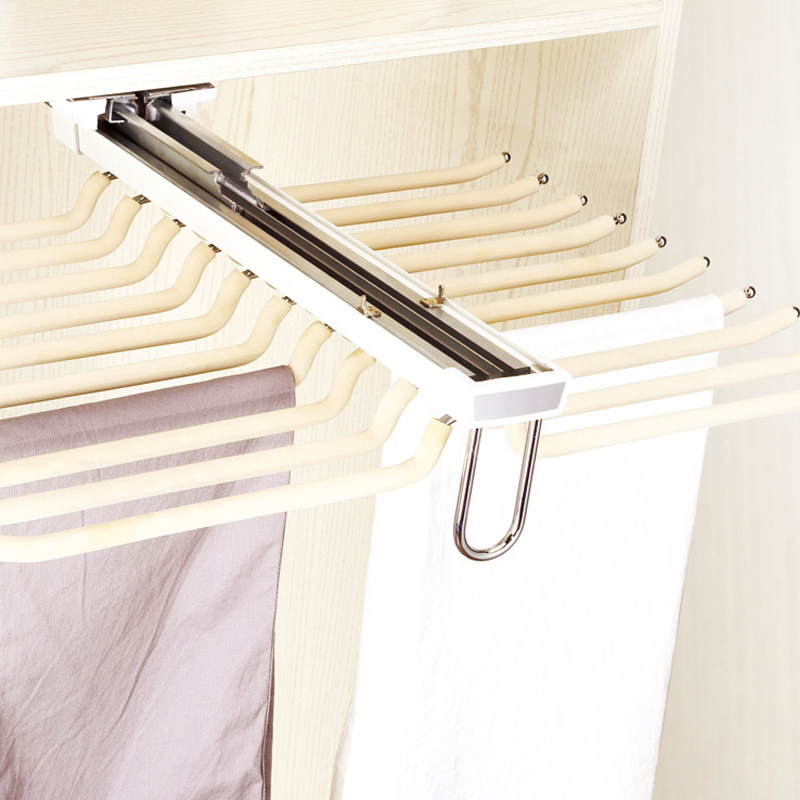 Верхние двойные брюки на полке демпфируют телескопические шкафные брюки.