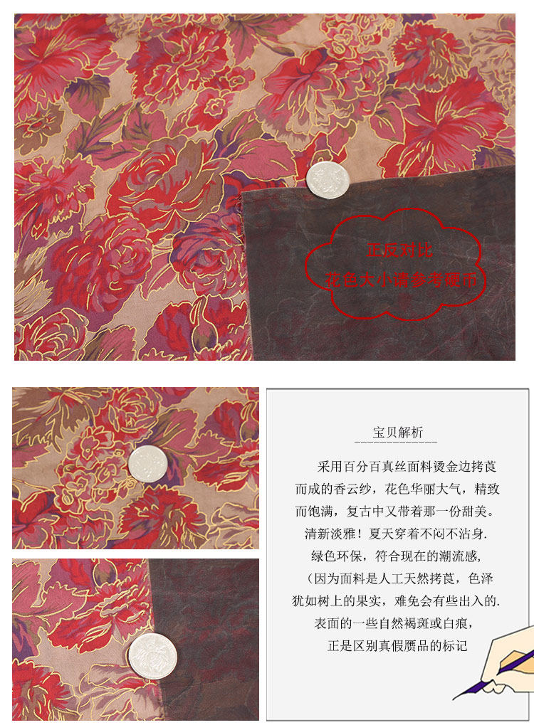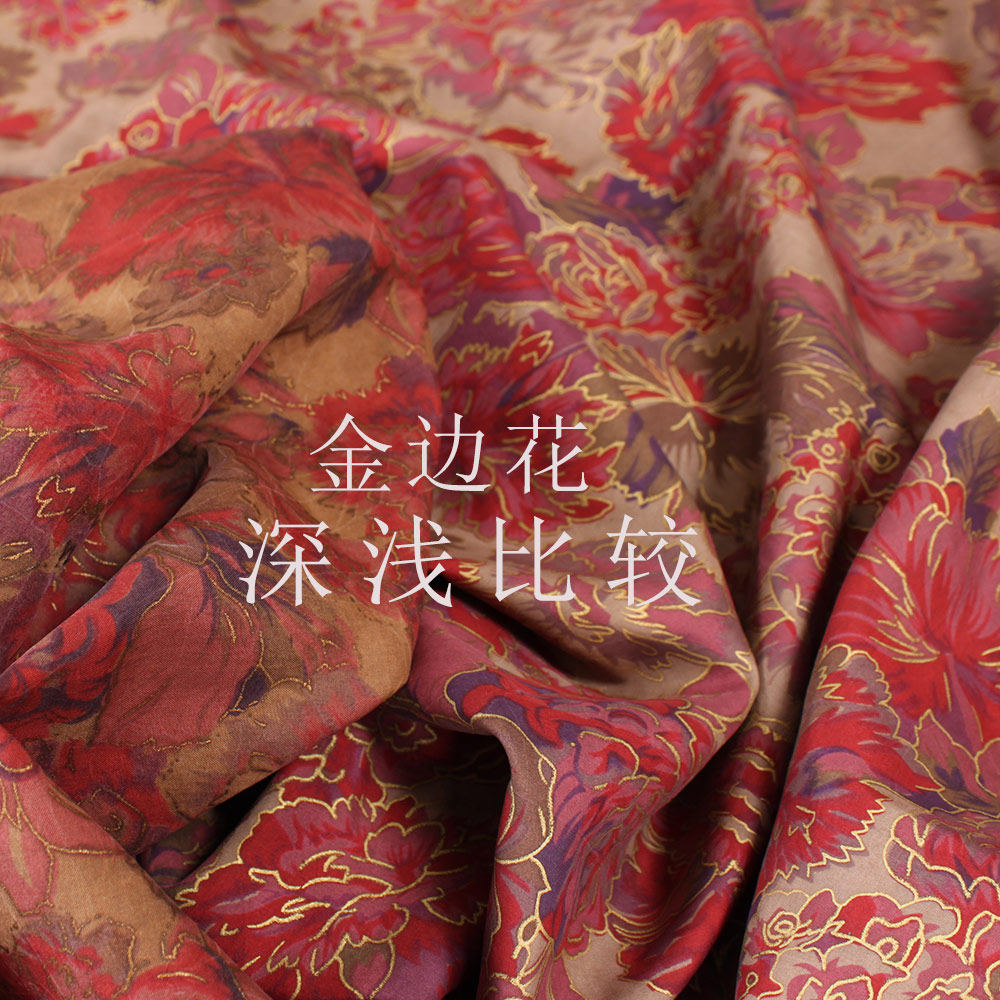 Продовольственная промоушена летняя одежда 茛 шелковая ткань традиционная пытка настоящие шелковые ароматные облако ya светло -золотое края цветочная ткань 8925