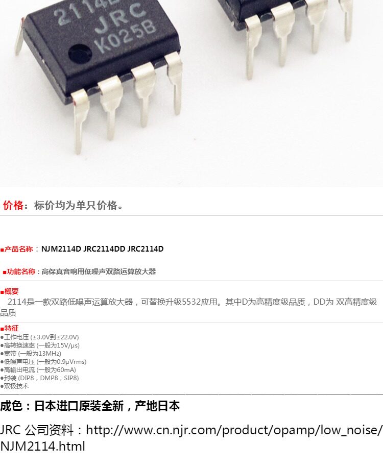 Япония импортирован оригинальный новый JRC 2114DD 2114D NJM2114D с низким уровнем шума с двойным усилителем Ampoulette