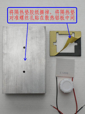 3. Приступаем к сборке всей холодильной системы.——Сначала приклейте теплоизоляционную прокладку к середине радиатора, как показано на рисунке ниже, убедившись, что она совмещена с отверстиями для винтов.