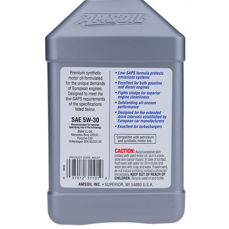 Полное название масла:Синтетическое моторное масло AMSOIL European Car Formula 5W-30