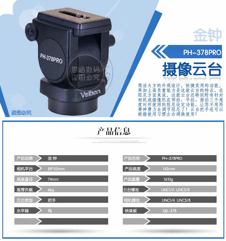 Velbon/Golden Bell PH-378pro Camera Gongtai PH378pro Camera Professional Global