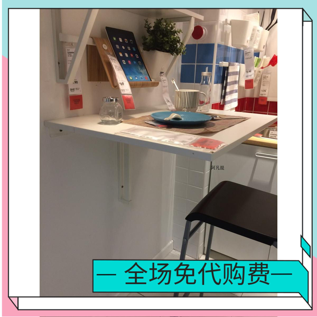 Ikea Ikeberg стена Складывающаяся складная таблица белая бирзовая таблица складная доменная доменная стоимость домашнего приобретения.
