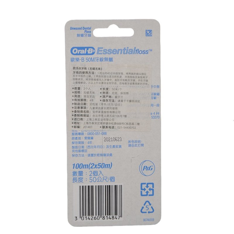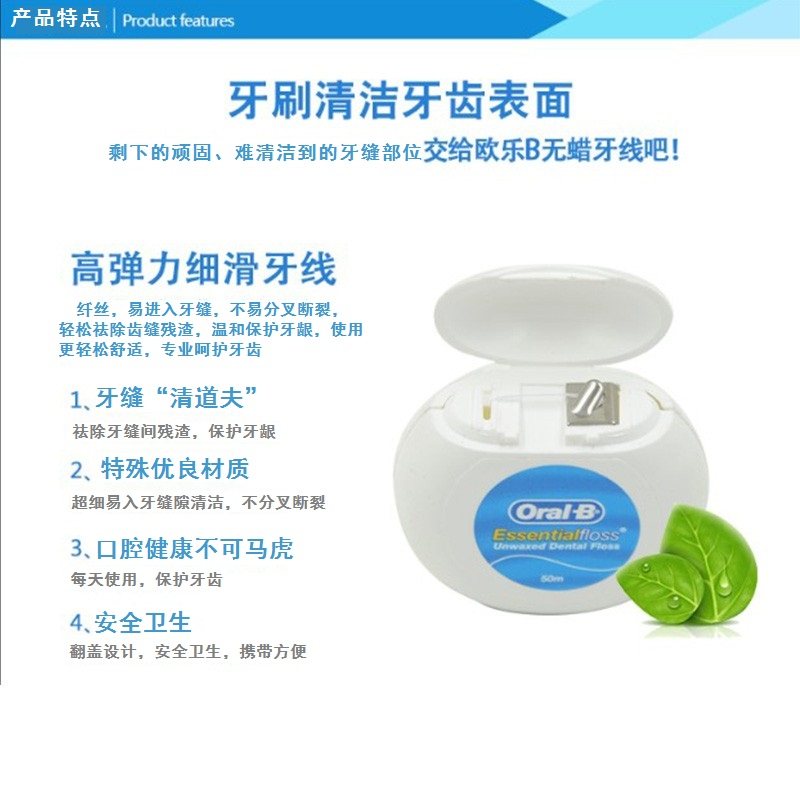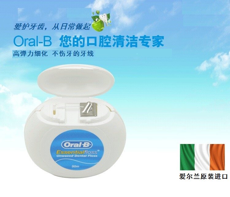 Ирландия импортированная пероральная б/олай B Стоматологическая нить удобная 50 метров без восковой плоской линии Ультра-плавная профилактика