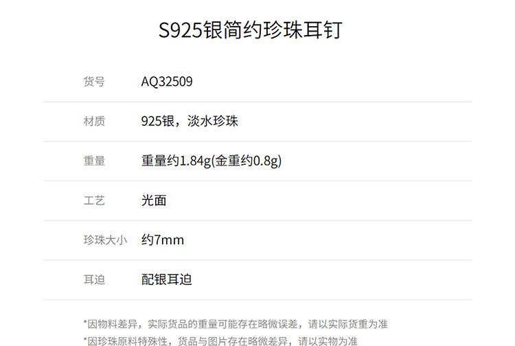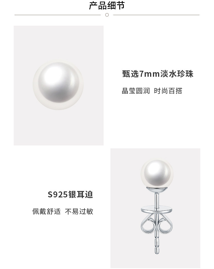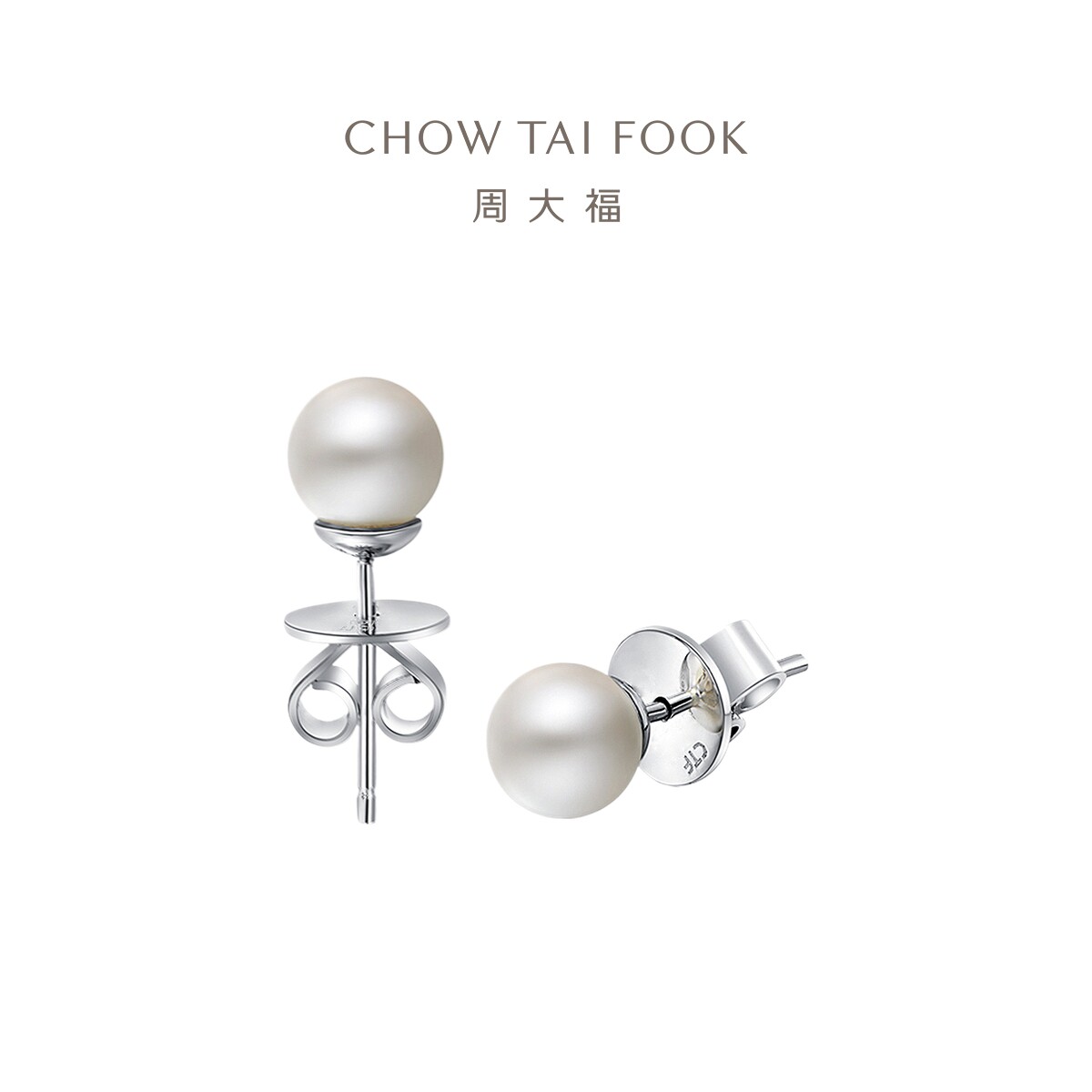 周大福 Серьги из жемчуга для друга, простой и элегантный дизайн, серебро 925 пробы, подарок для девушки