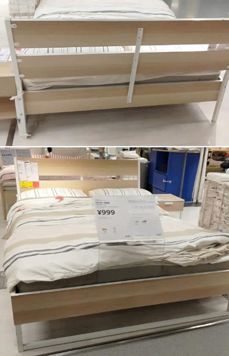 Jinan Ikea nanjing Ikea Домашние покупки дома Домашнее Домохозяйство Тризо Кровать полка темно -коричневое белое дерево 150*200