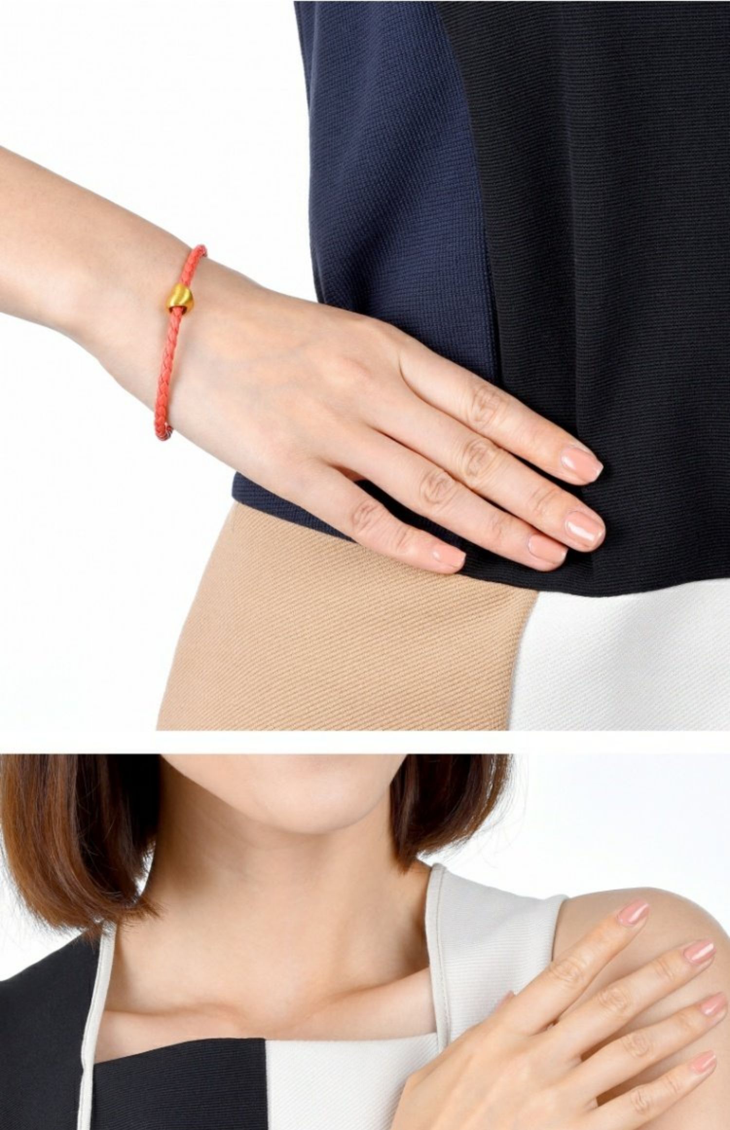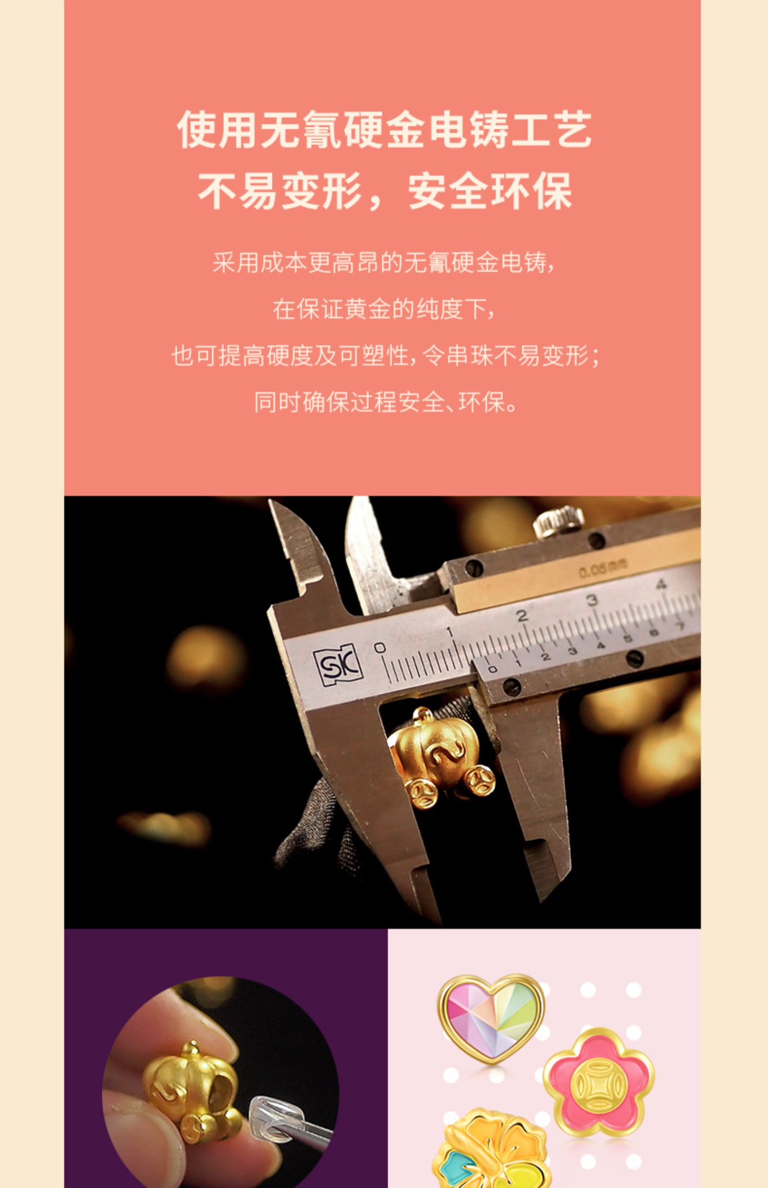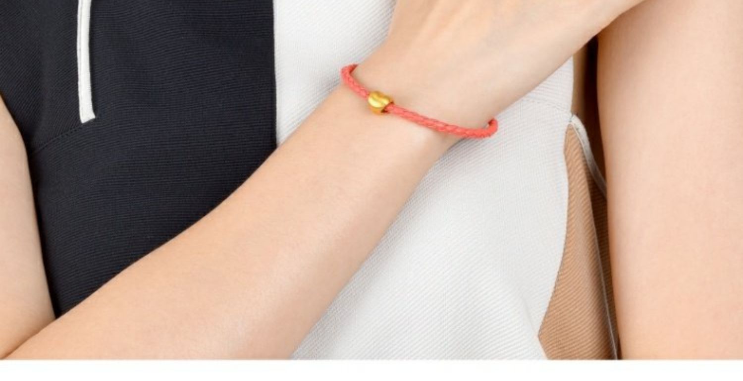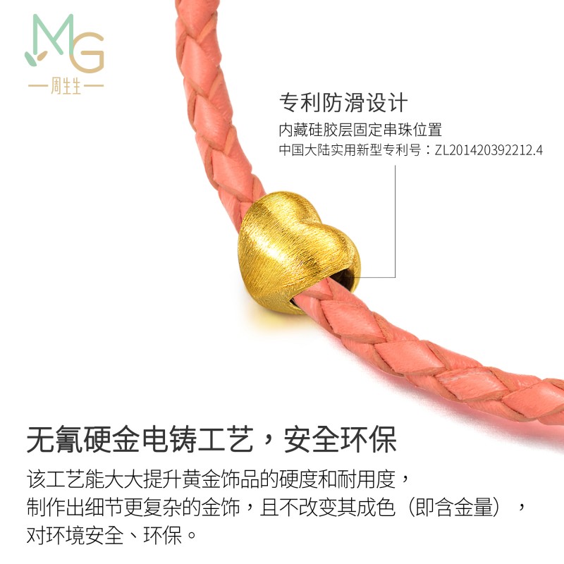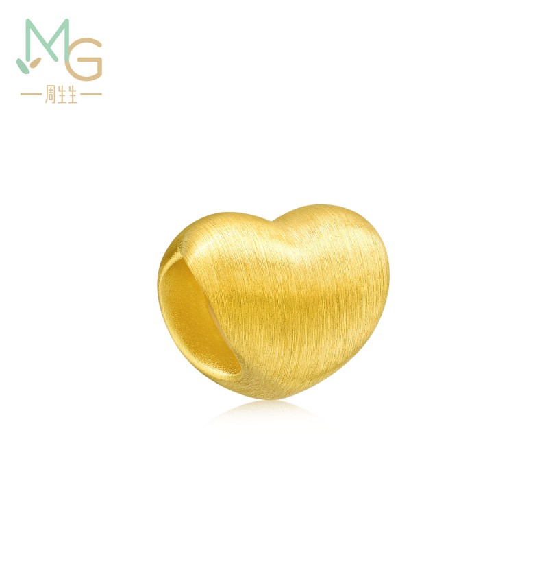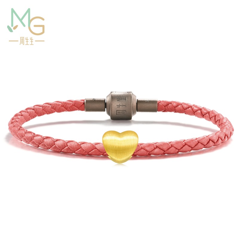 周生生 Золотой браслет с одной бусиной в форме сердца, 3D