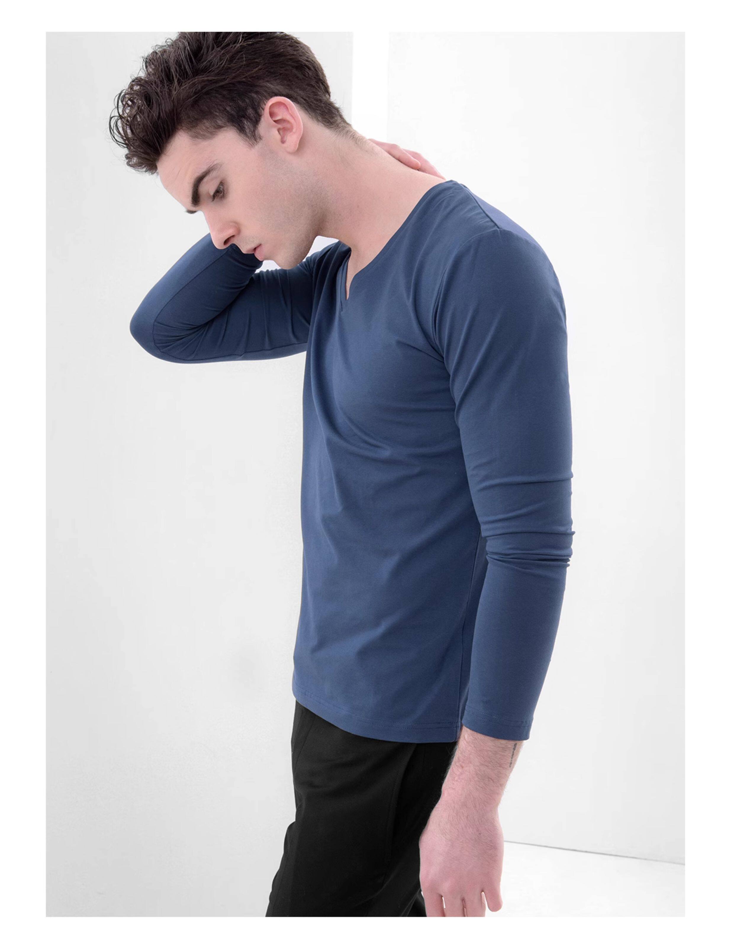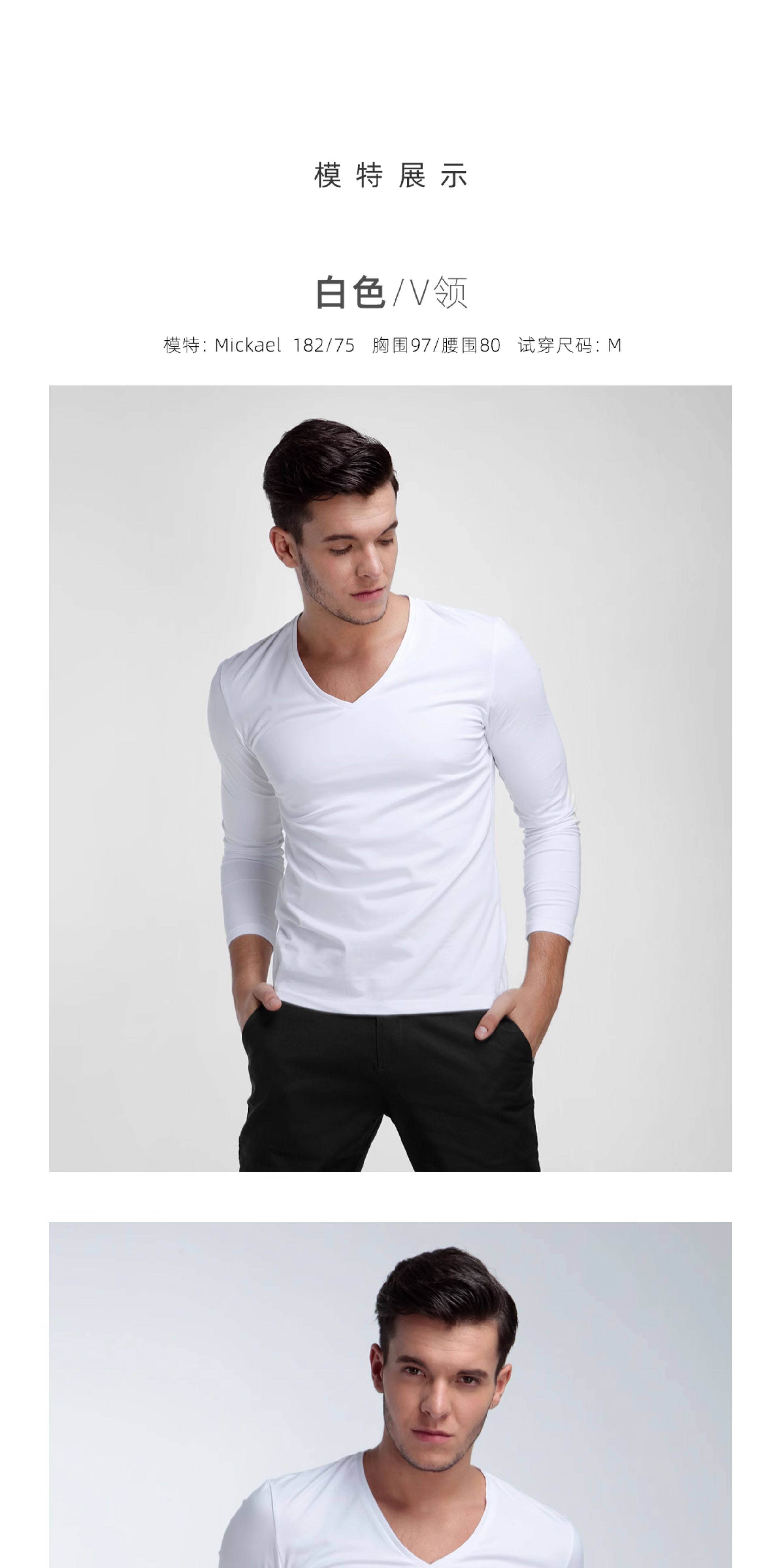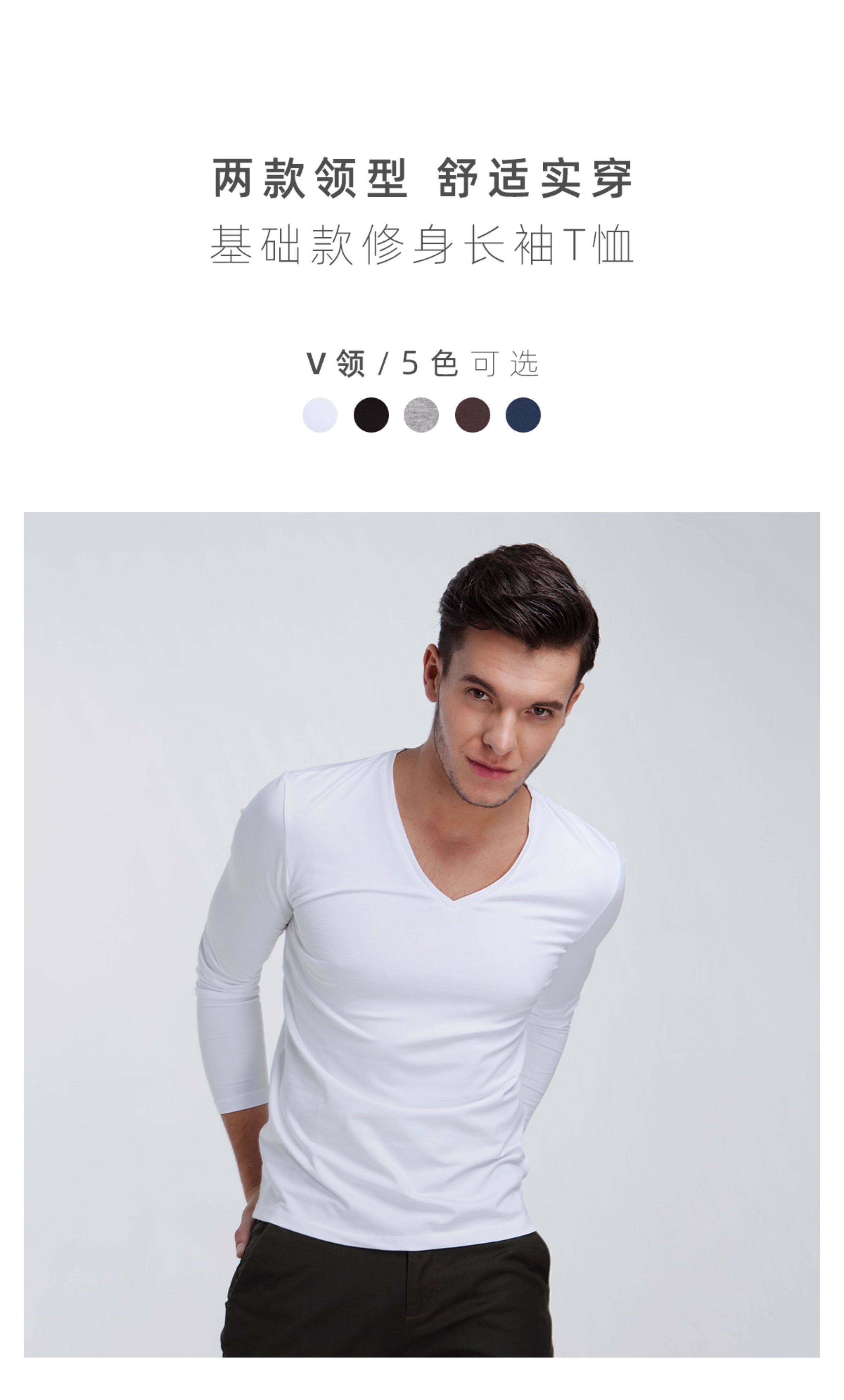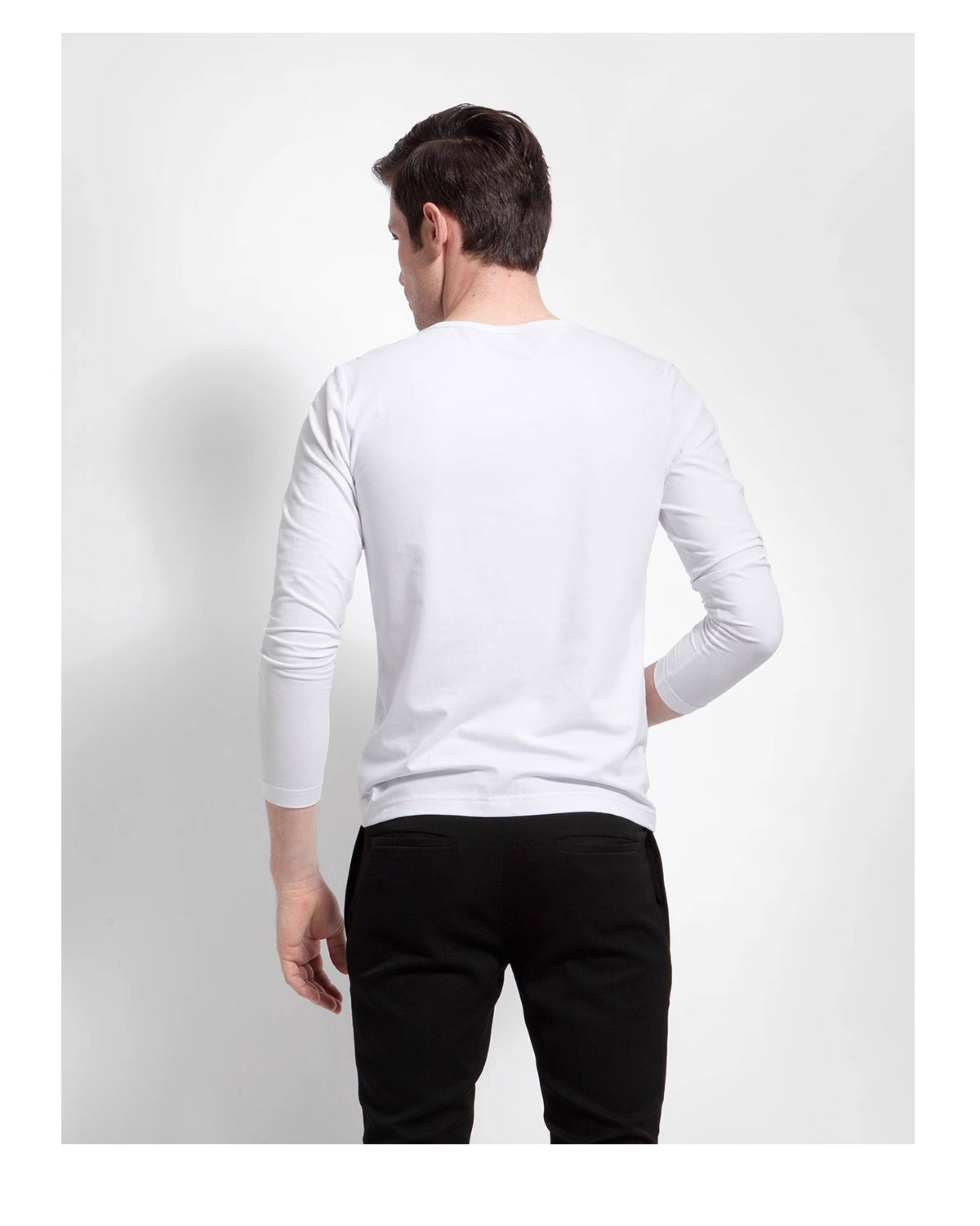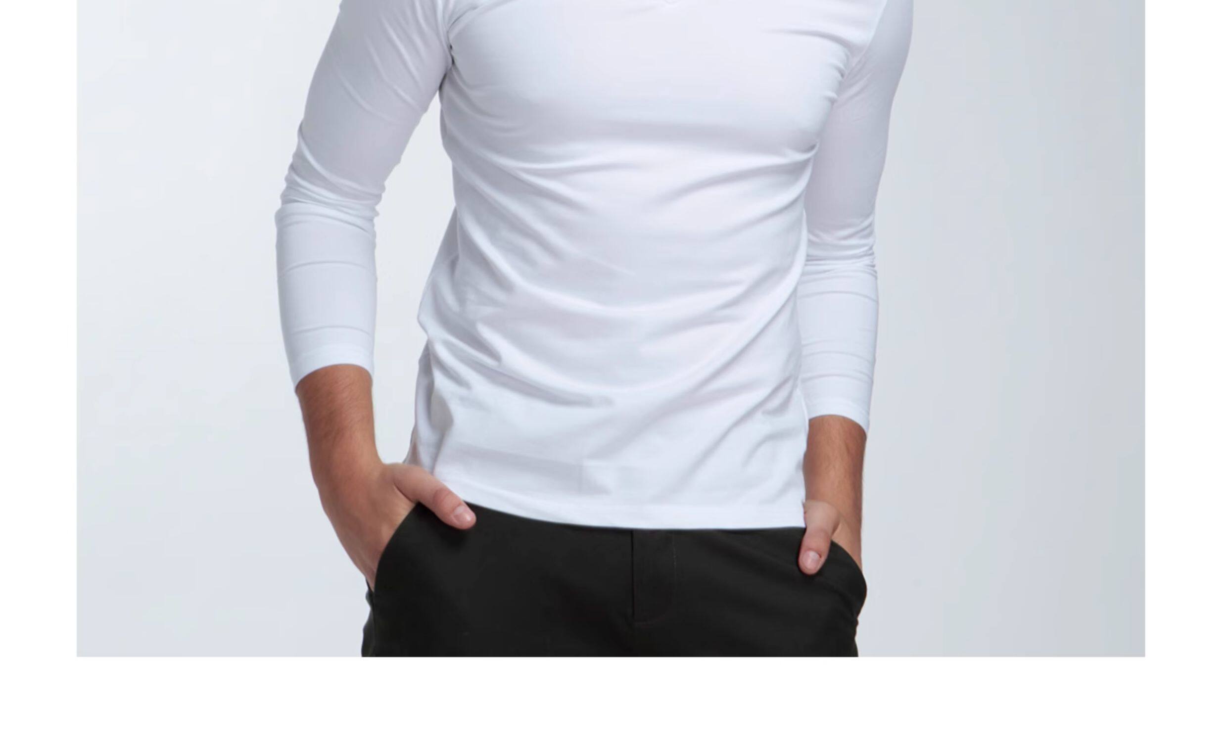 Хлопковое термобелье, мужской базовый приятный телу белый лонгслив, V-образный вырез, облегающий крой