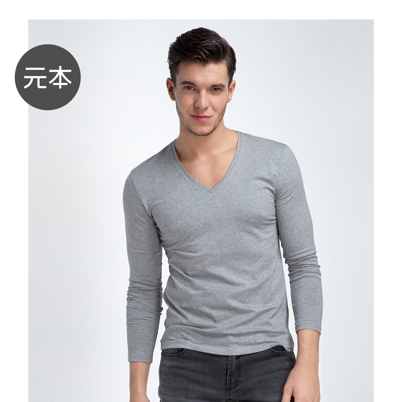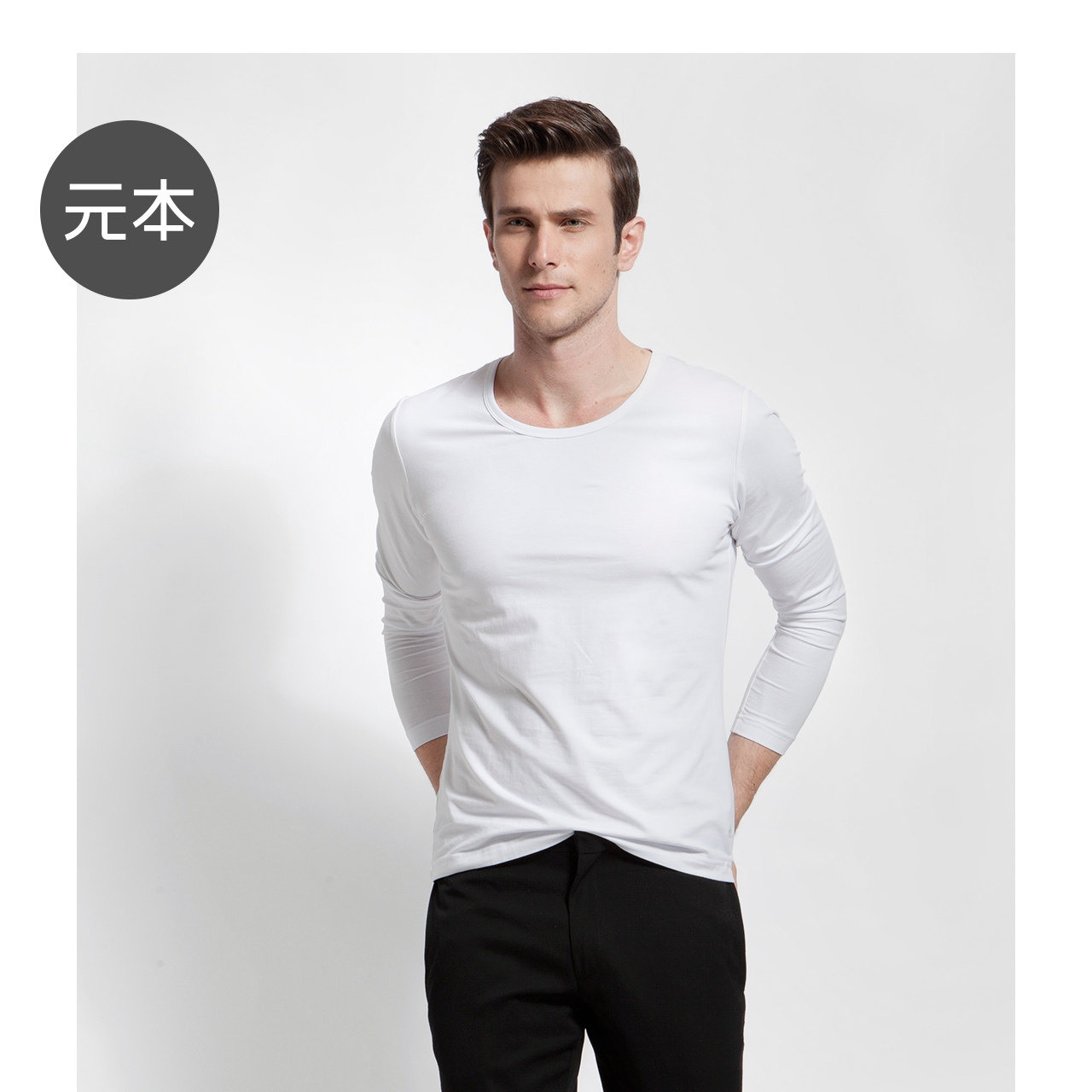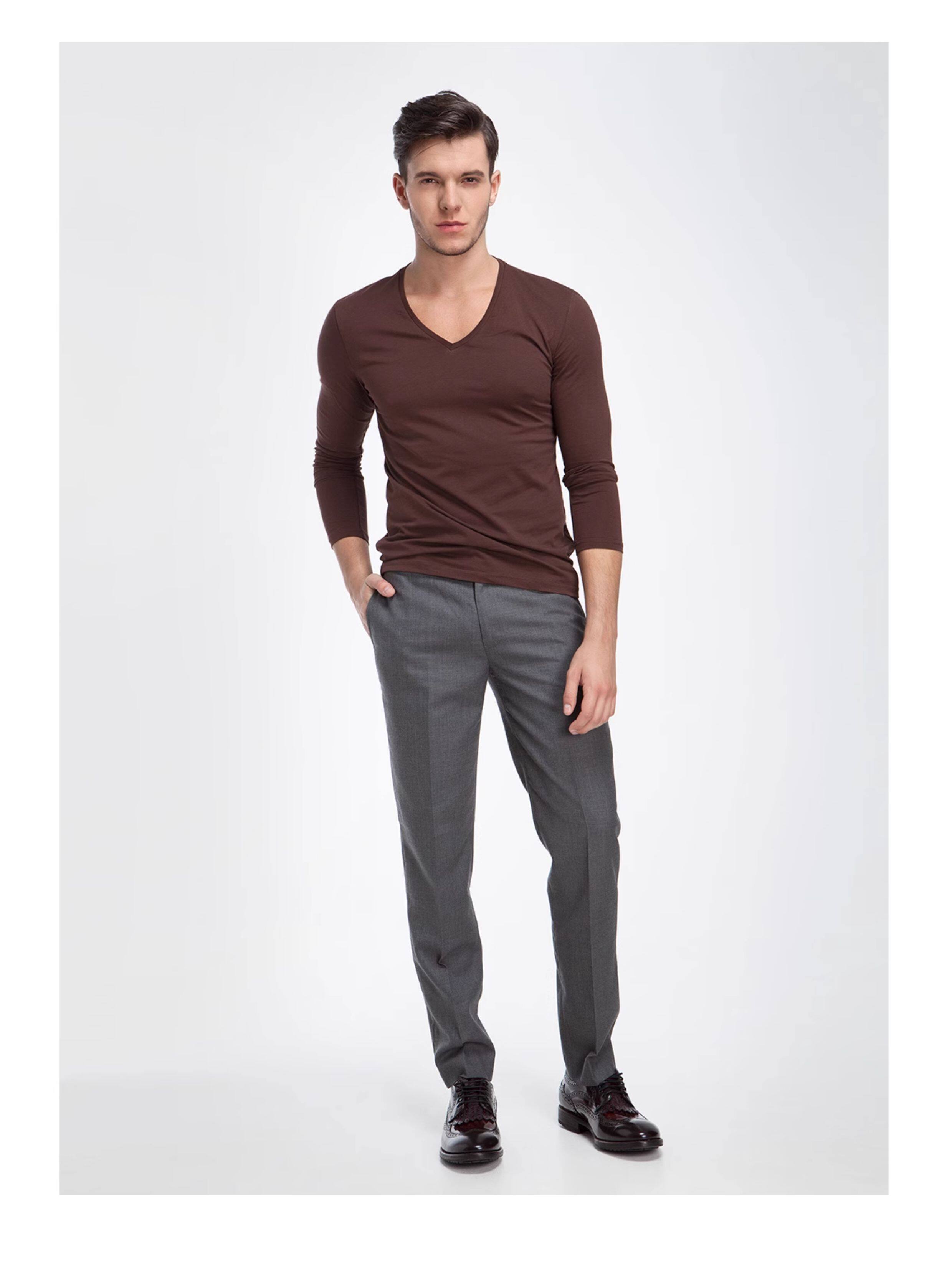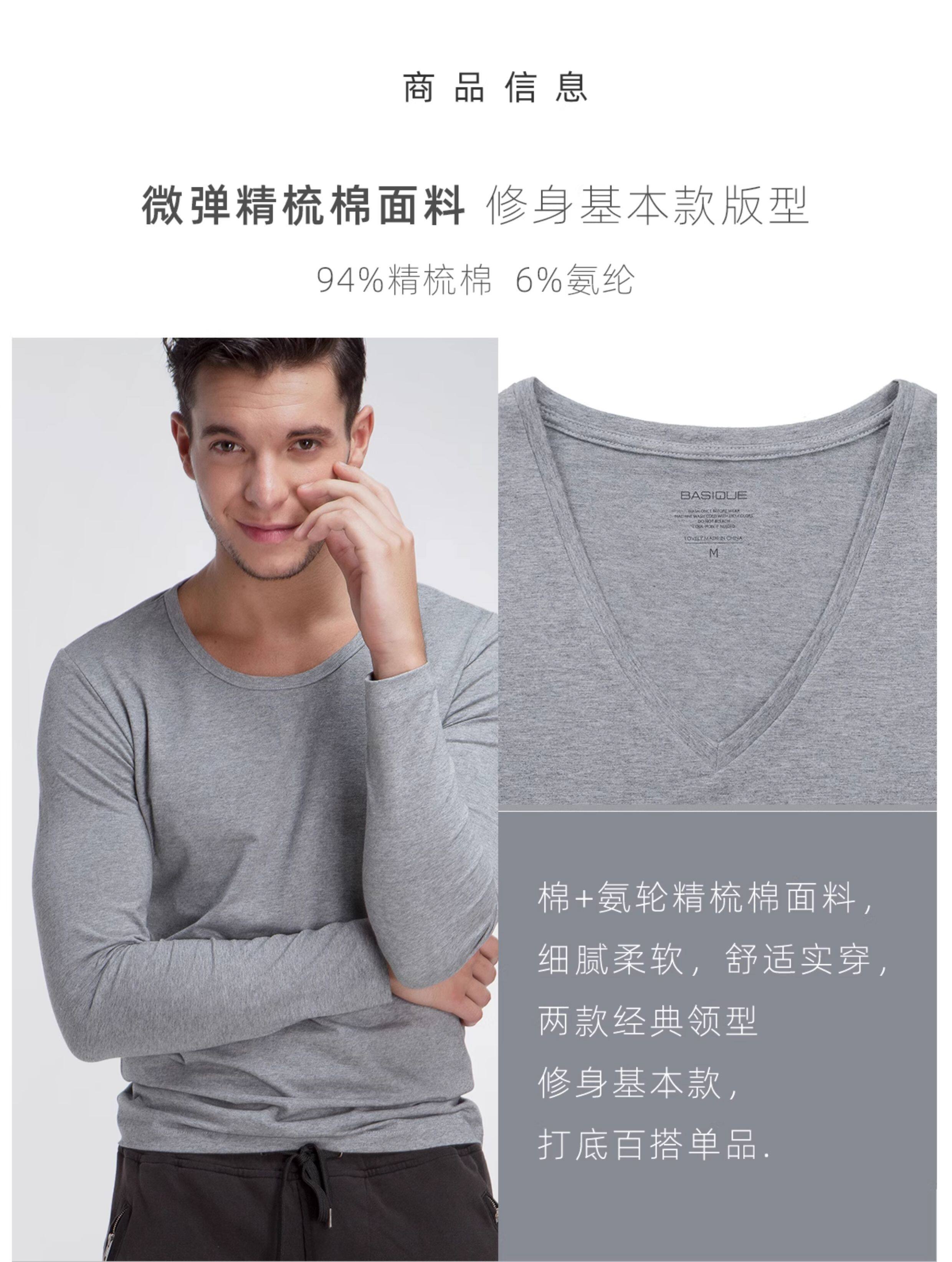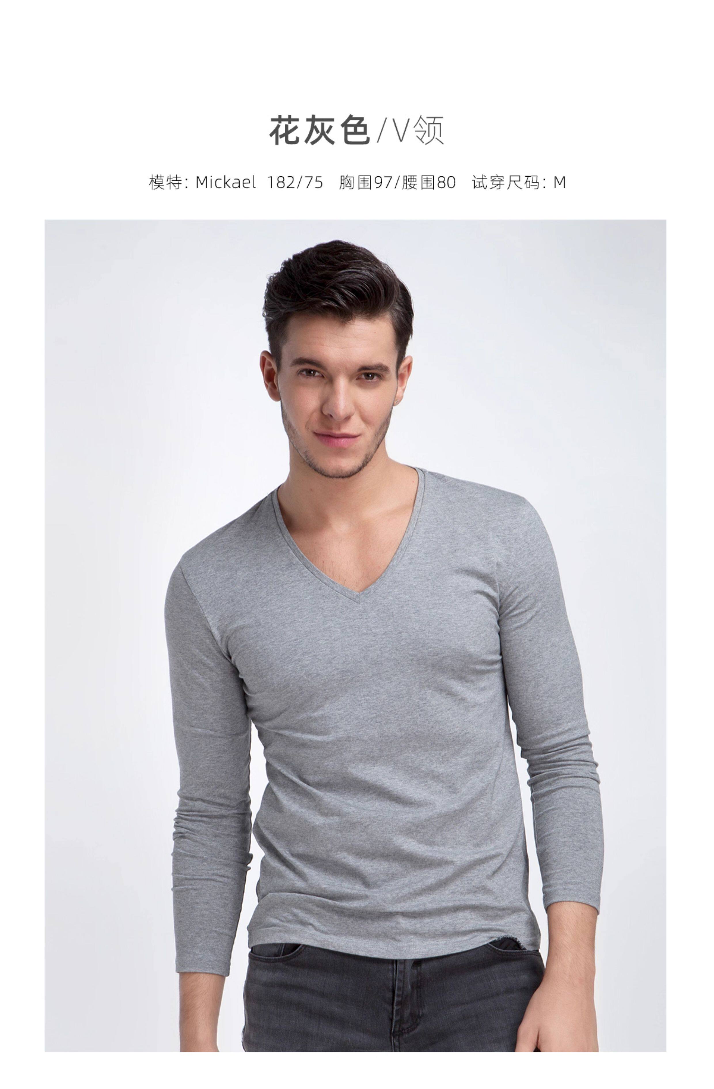 Хлопковое термобелье, мужской базовый приятный телу белый лонгслив, V-образный вырез, облегающий крой