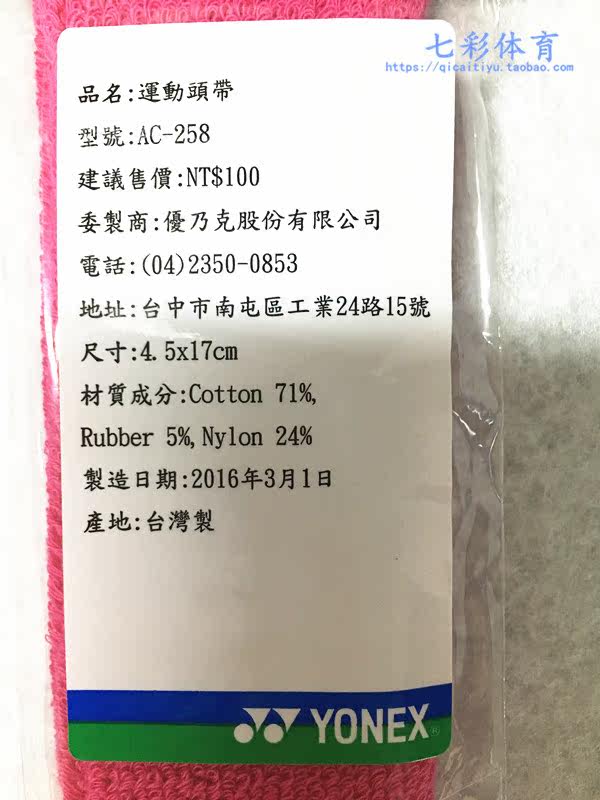 Yonex Yunix Summer Sports Ac061 Мужская и женская пот -Абсорбентная группа йога бадминтон AC258